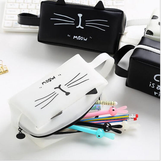 Boy and girl cat pencil bag Student large capacity cat head stationery storage bag Simple silicone pen case