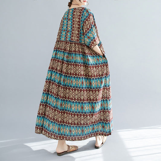 Artistic Retro Anti-aging Loose Slimming Large Size Printed Dress Women's Clothing