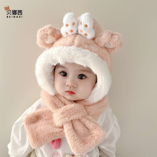 Winter hats and scarf plush warm kids winter hat set for childrens