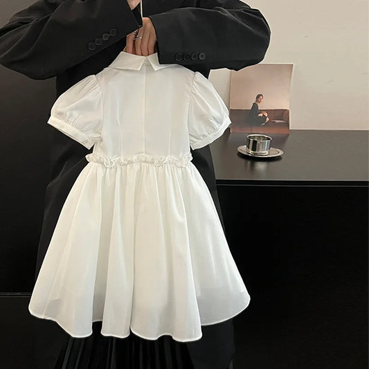 Girls’ Floral Summer Party Dress – White Puff Sleeve Dress with Floral Print Lightweight Cotton Blend for Ages 2–7 Girls Clothes