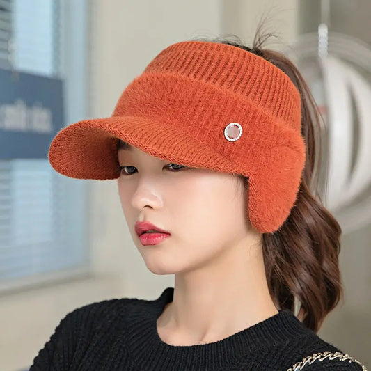 Womens Ponytail Hat with Contoured Ear Warmer Visor Hat Lightweight Runner's Hat