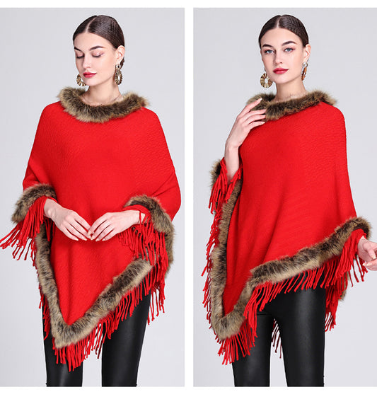 Womens Fashion Winter Pullover Tassel Top With Fur Collar