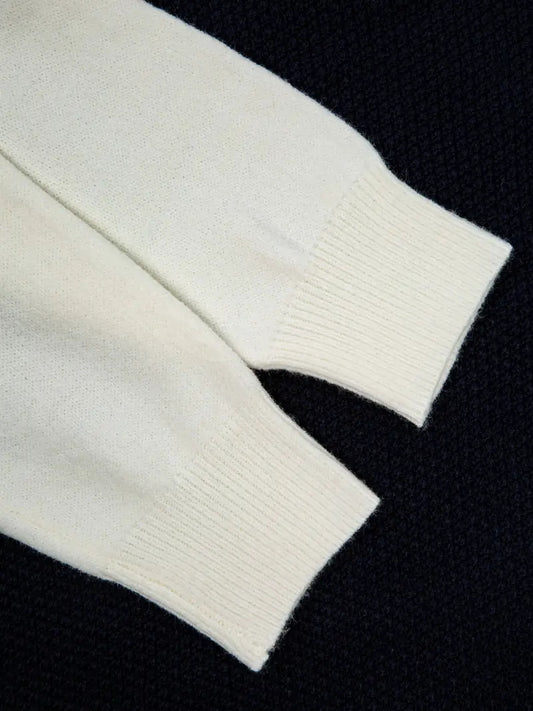 Inner Square Collar White Design Long Sleeve Knitted Sweater