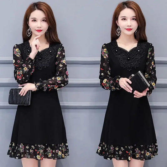Dress Women's Fashion Western Style Spring and Autumn Clothing New Collection Waist Cinching Slimming Small Black Dress