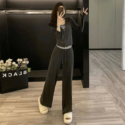 Western-style Suit Spring Autumn Fashion Slim Sweatshirt Wide-leg Pants Two-piece Trendy Set