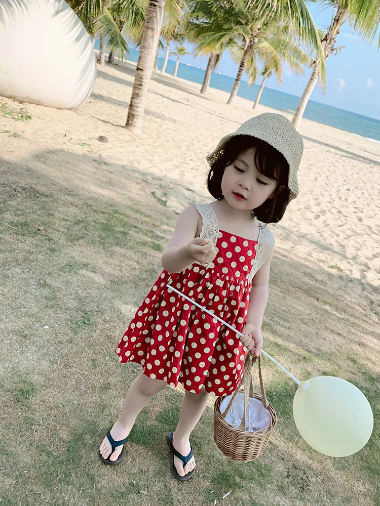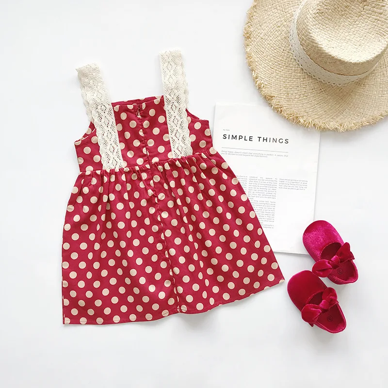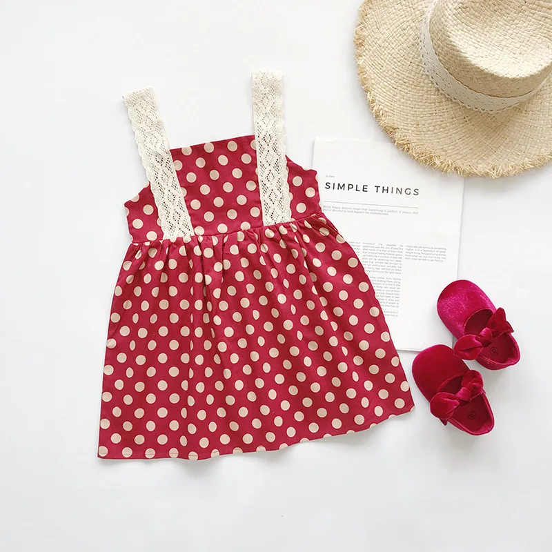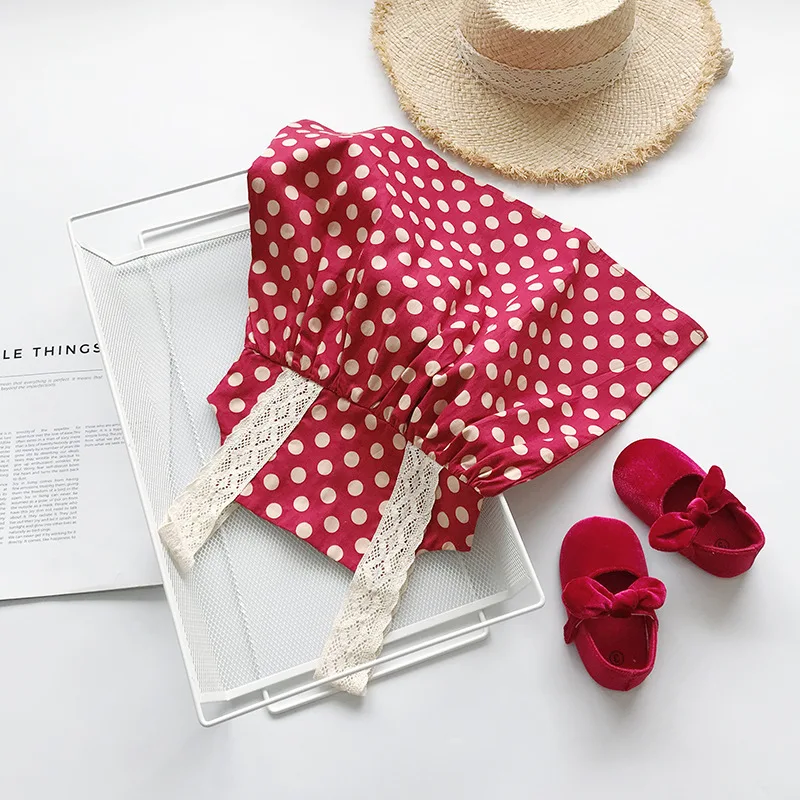 New Baby Summer Dresses Girls Sweet Lace Chiffon Polka Dot Dress Little Girl Chiffon Short Sleeve Dress For Kids Clothes