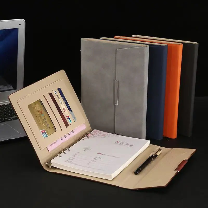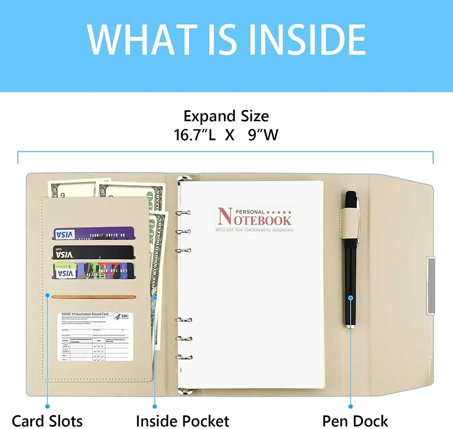 A5 Binder Refillable Planner Faux Leather Notebook Journal with Card Pen Holder Outdoor Journal Planner Agenda DIY Birthday Gift