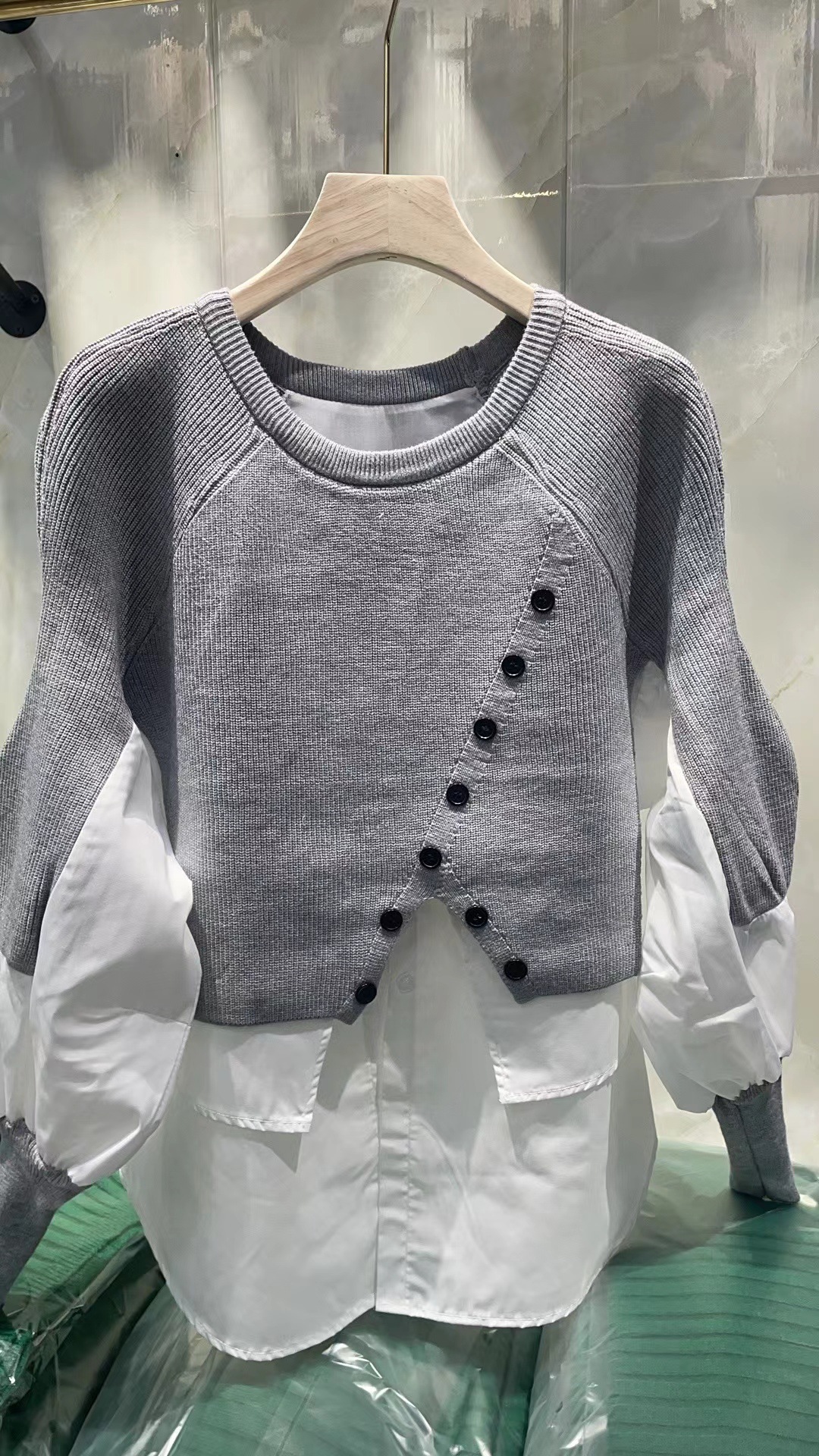 Autumn And Winter Pullover Women's Stitching Shirt Fake Two-piece Fashion