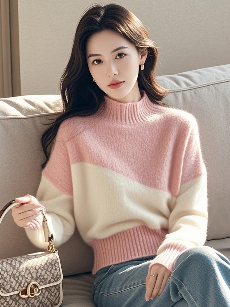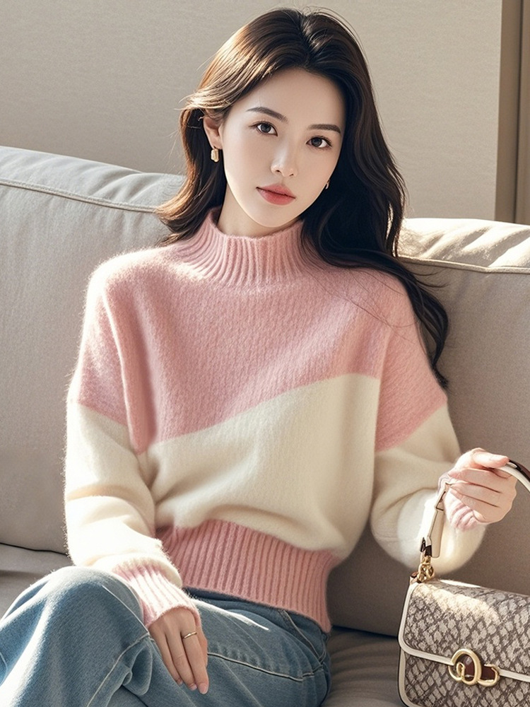 Casual Half-high Collar Long Sleeves Sweater Knitwear For Women