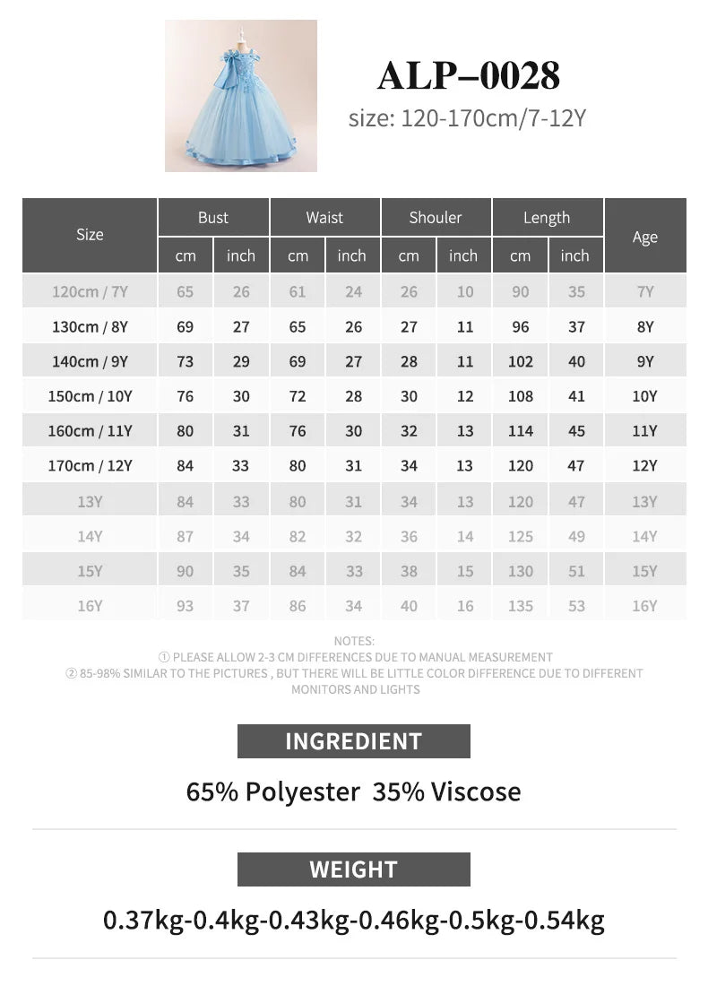 Fashion Bridesmaids Party Girls Dresses Elegant Flower Wedding Princess Dress for Girl Birthday Evening Prom Christmas Costumes