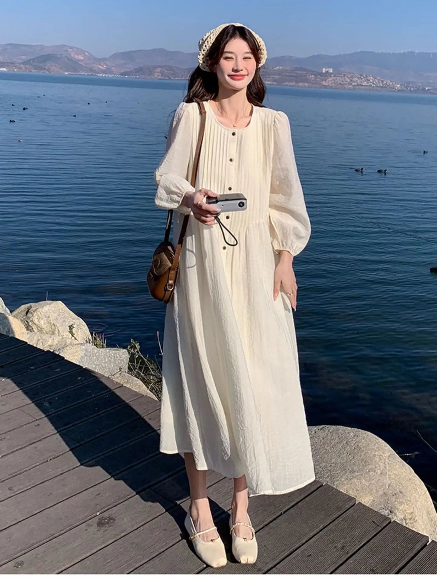 French White Dress for Women in Early Spring New Style Gentle Style Literary Retro Fairy Skirt