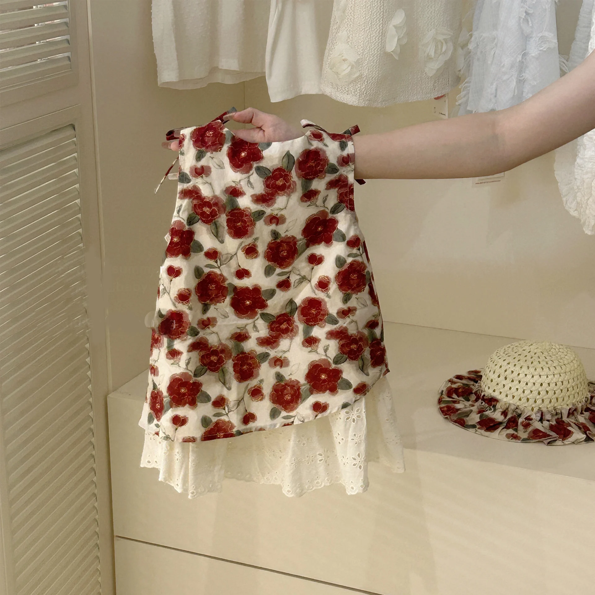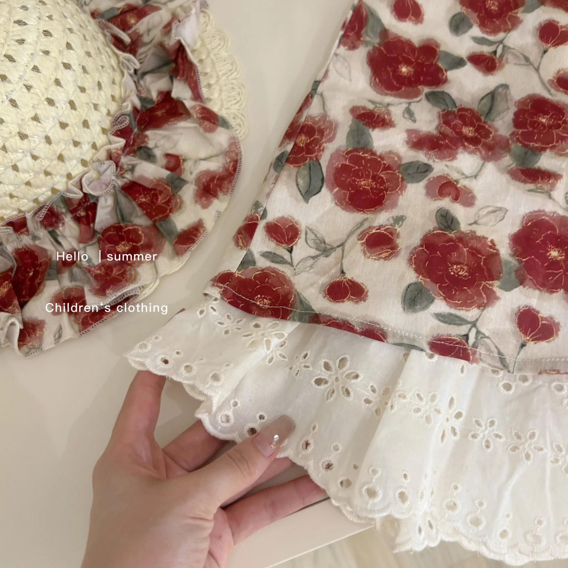Girl Dress Summer Red Flower Girl Holiday Dress Cute Beach Dress With Hat