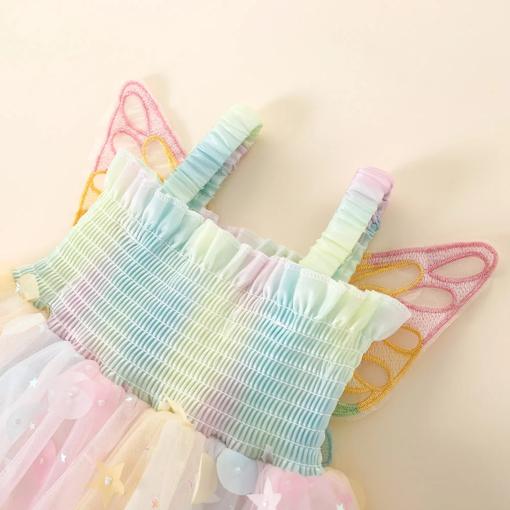 Girls' Dress Summer New Halter Colorful Butterfly Pearl Sequins Sweet Princess Dress Birthday Party Dress