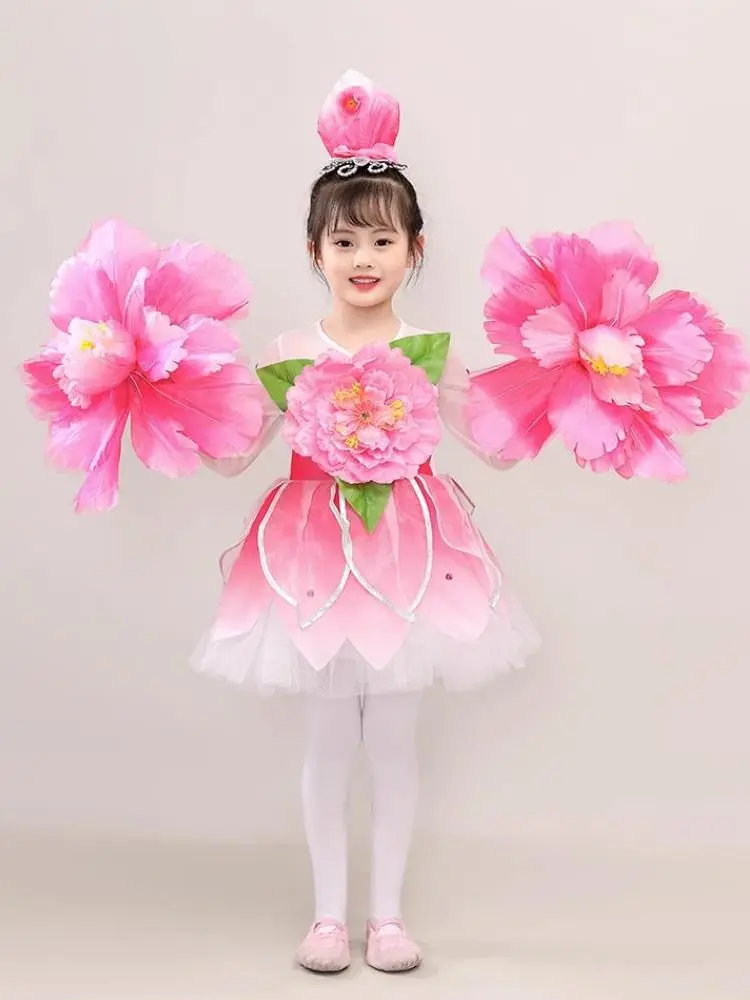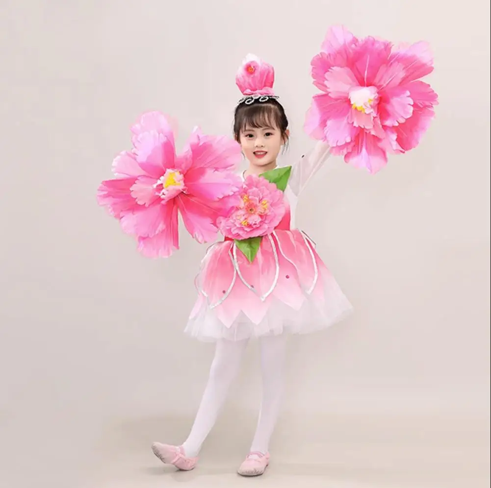 Girls Flower Dancewear Costume Kids Modern Dance Sequined Ballroom Party Dancing Dress Child Dancing Tutu Dress Clothes For Girl