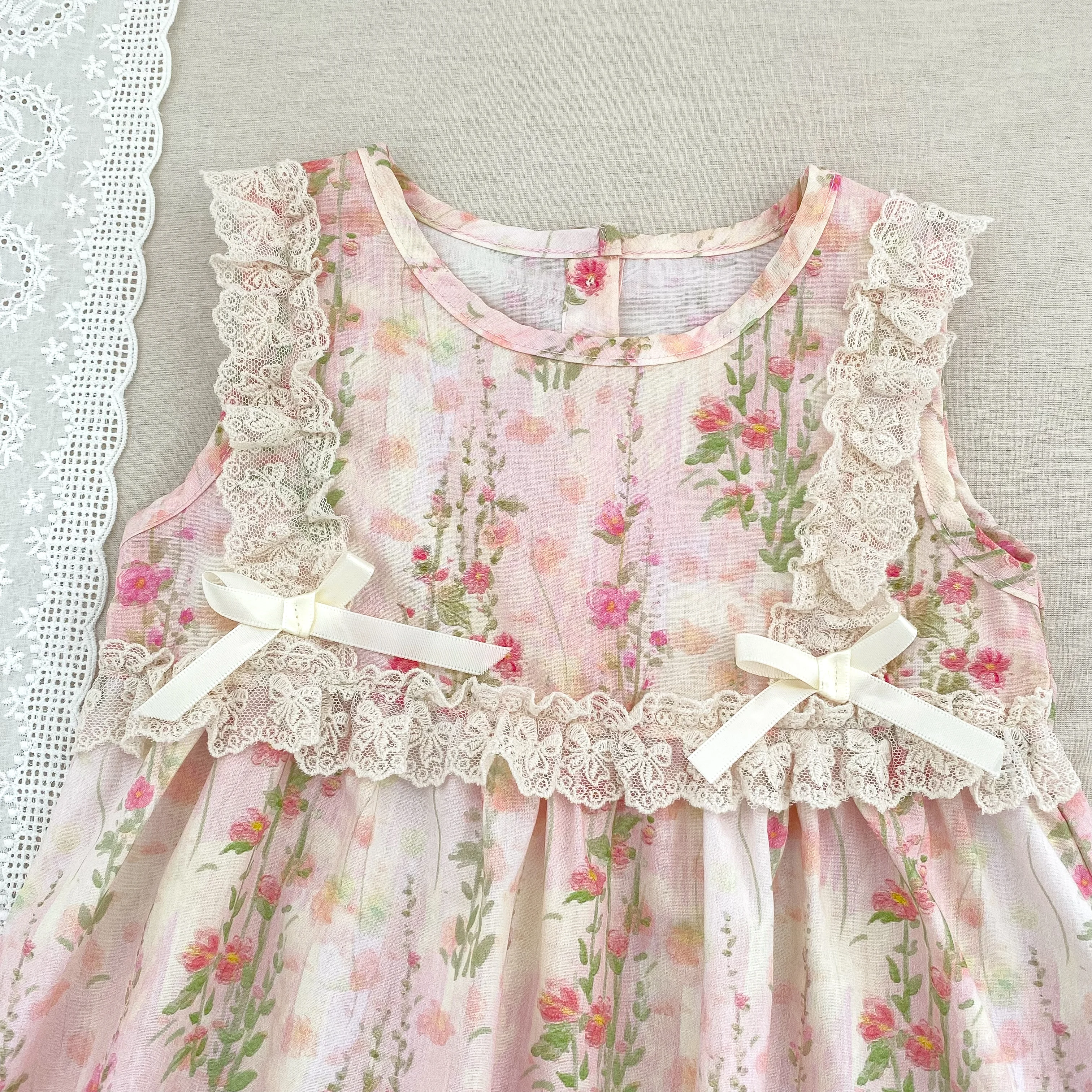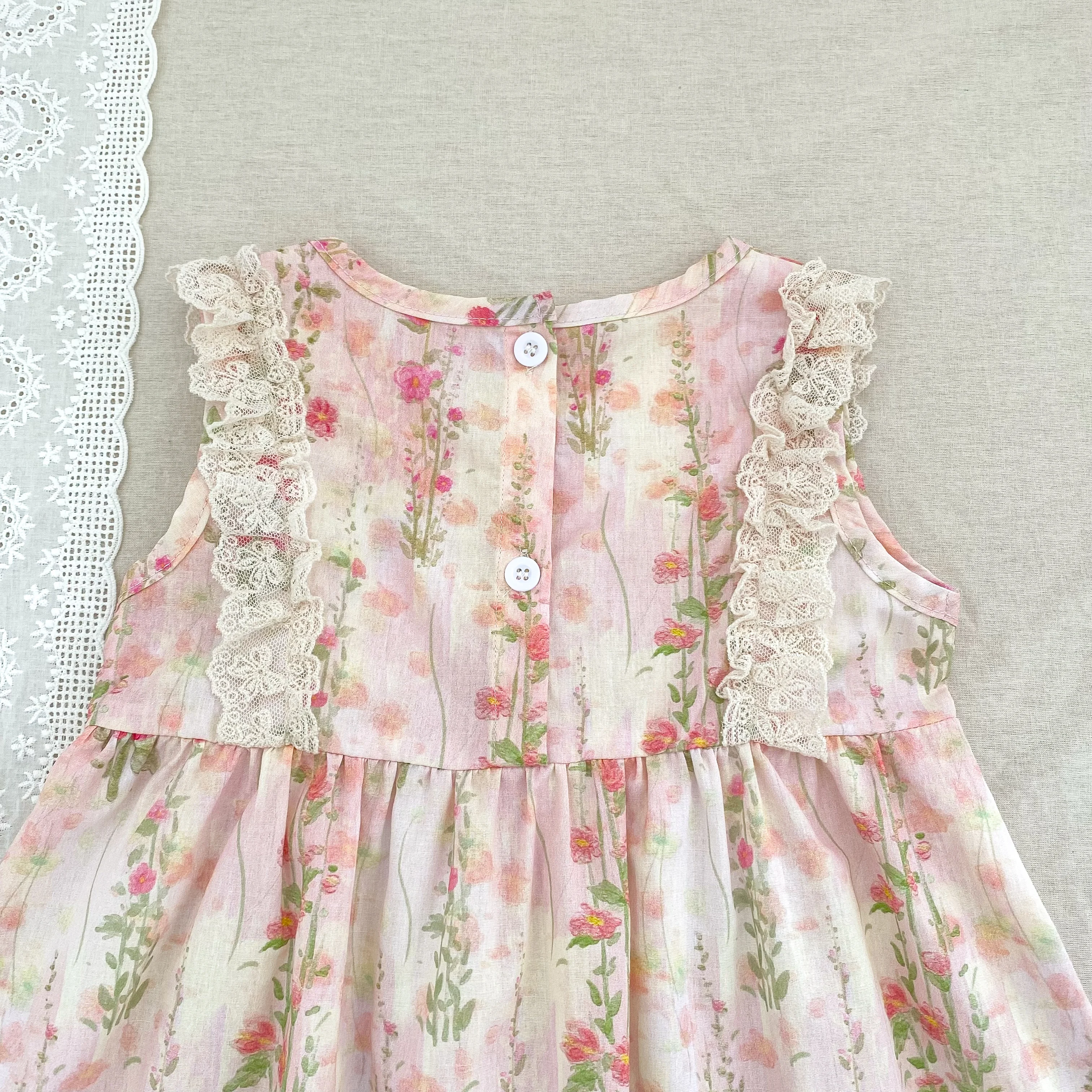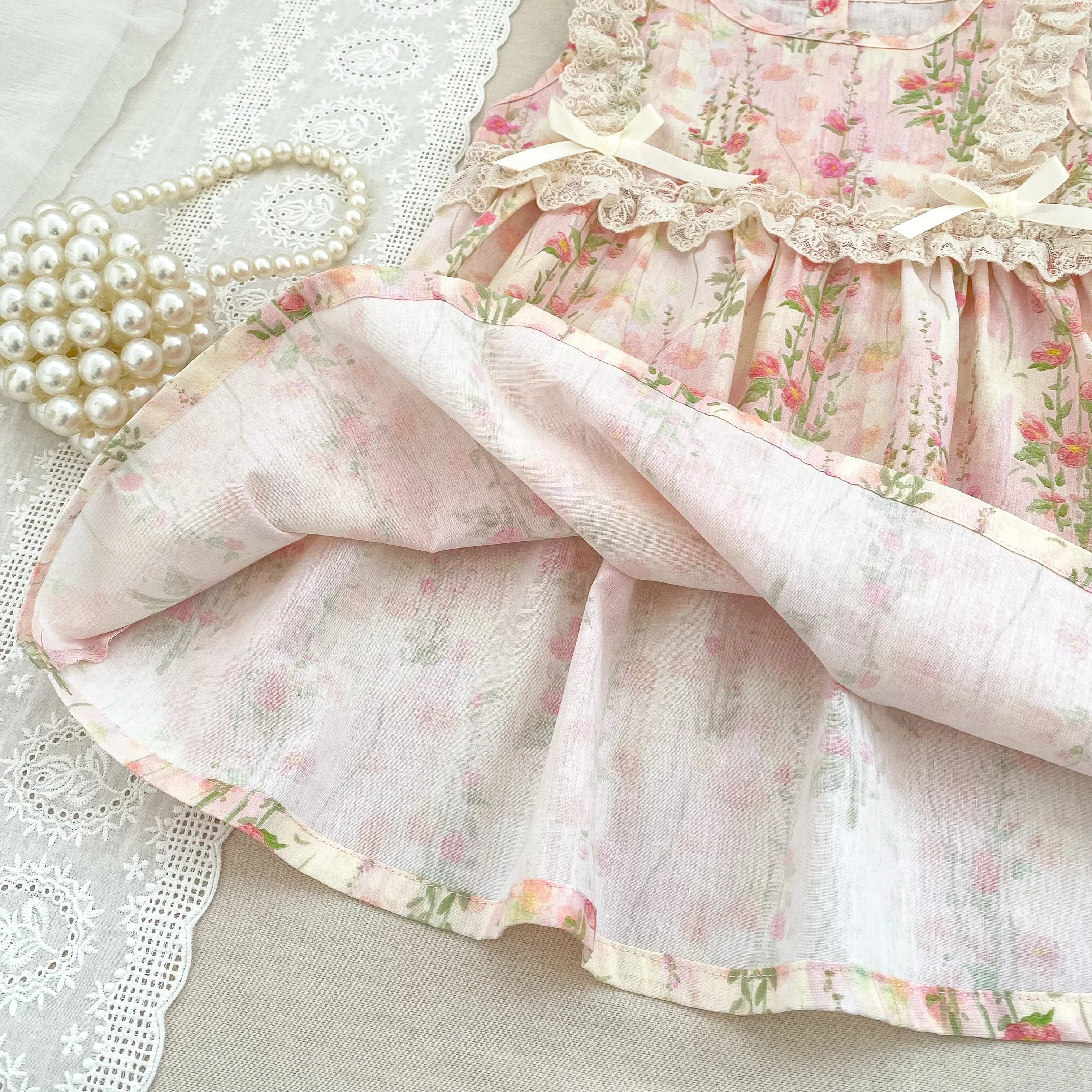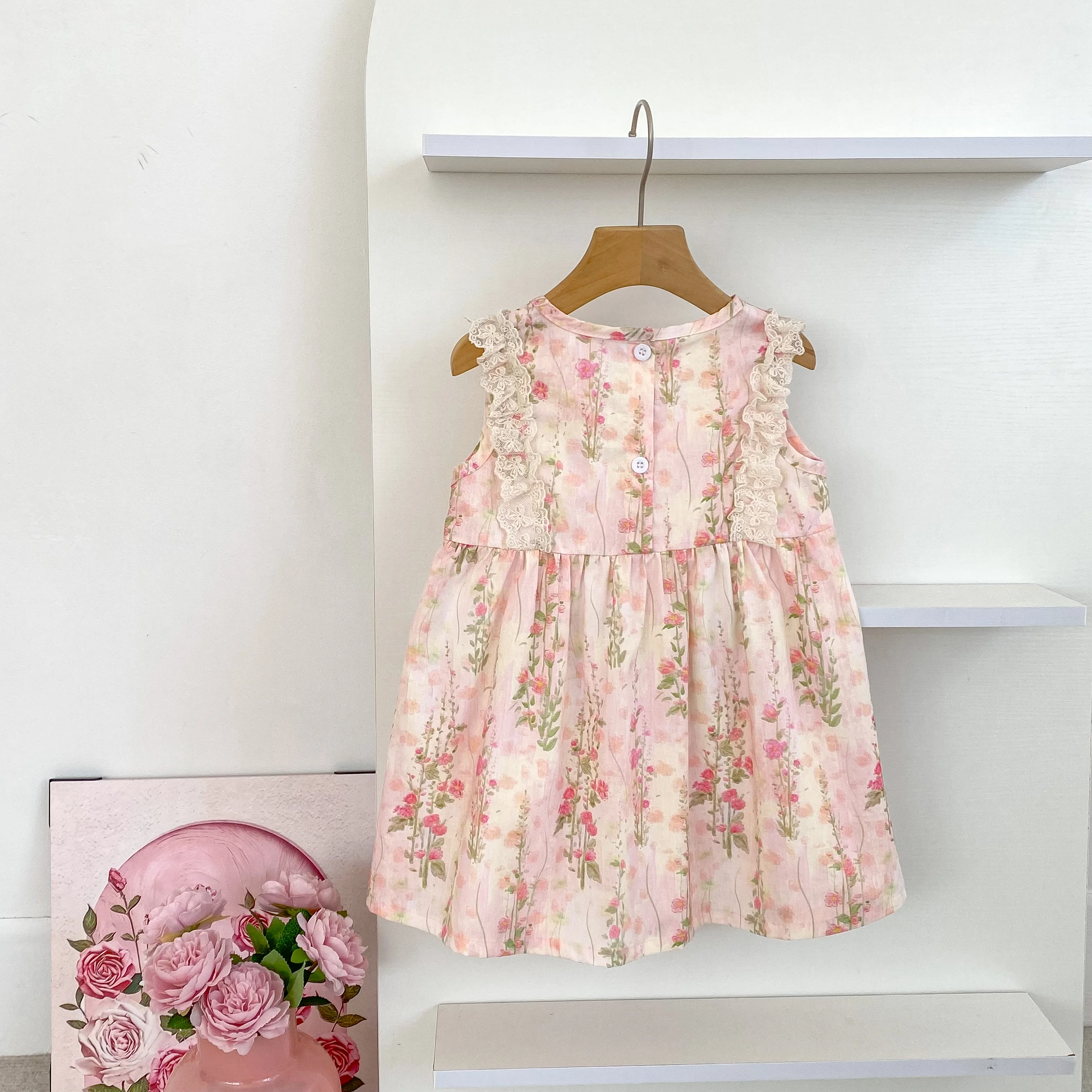 Girls Flower Dress Summer Retro Flying Sleeve Princess Dresses Children Casual Clothes 2-6Yrs Kids Pink Flower Bow Party Dress