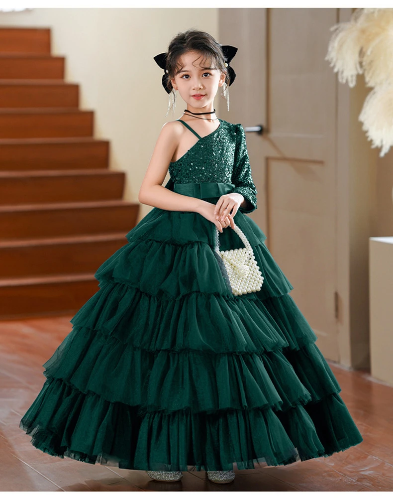 Girls' Long Princess Dress For Birthday Party Children's Fashion Show Dress Performance Evening Gown Clothing For Kids 4-12Y