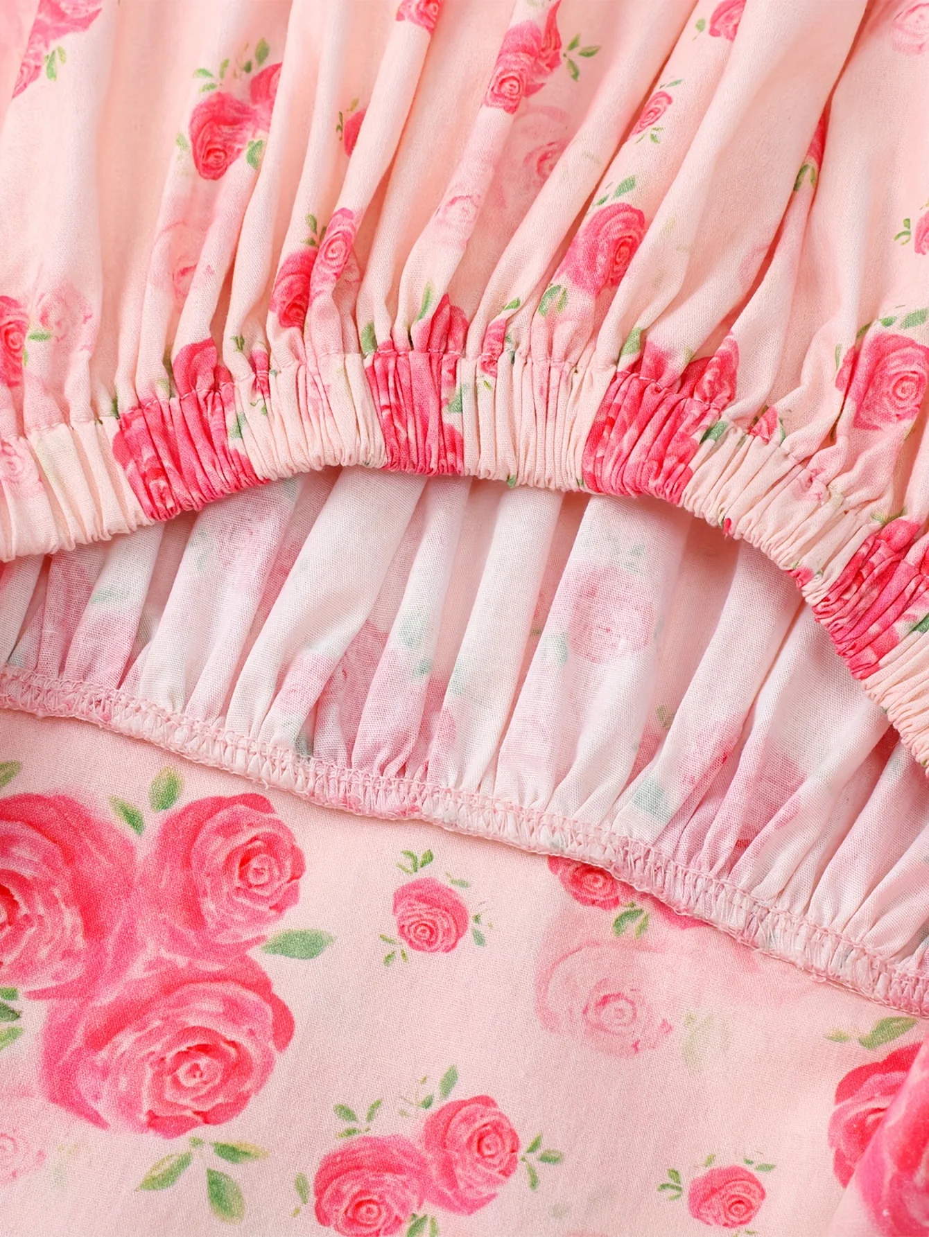 Girls Rose Print Dress Ruffled Flutter Sleeve Back Bow Design Pink Floral Party Dress for Toddler Kids Casual Outdoor Outfit