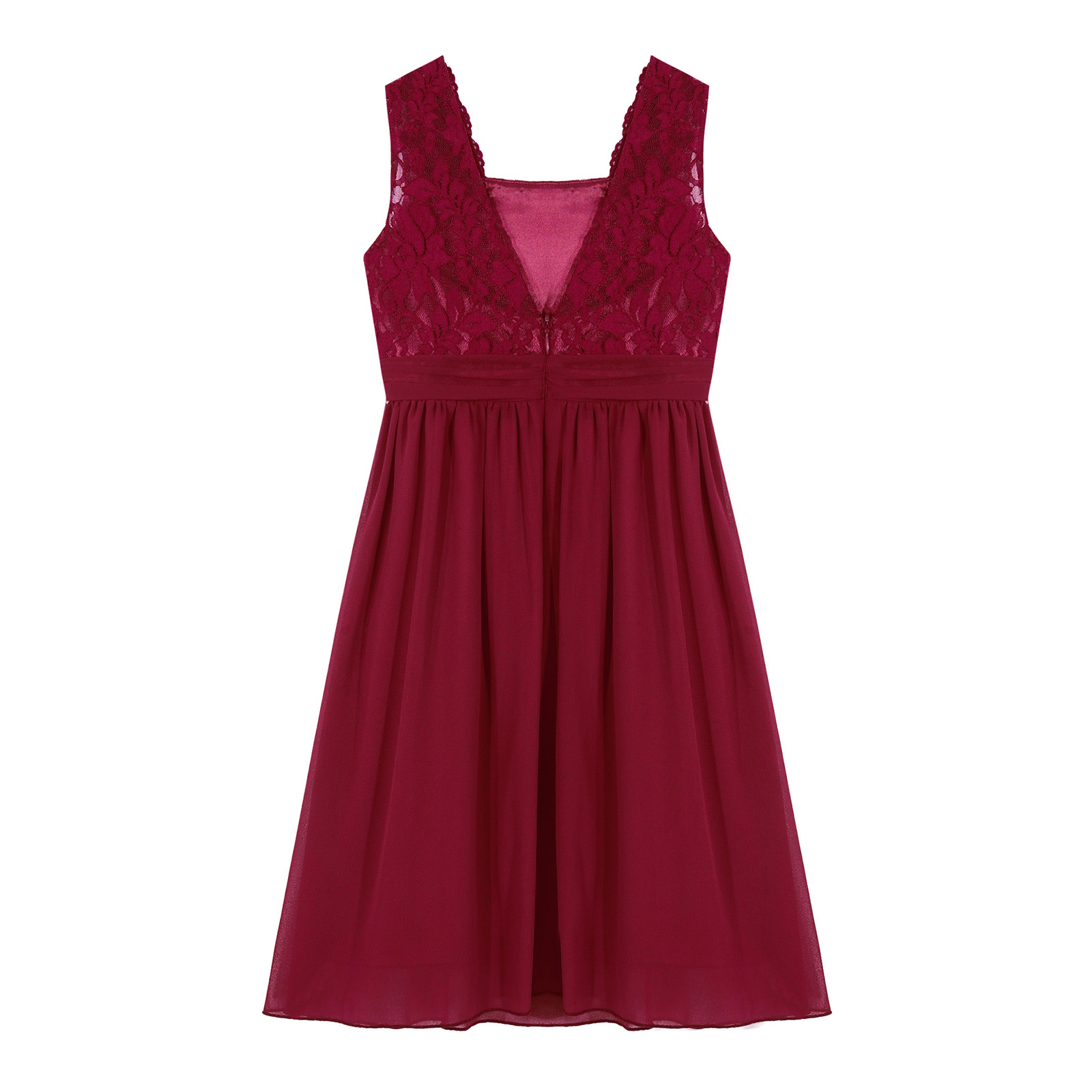 Flowing chiffon hem with smooth lined, back zipper closure. This dress makes girl look elegant and attractive.