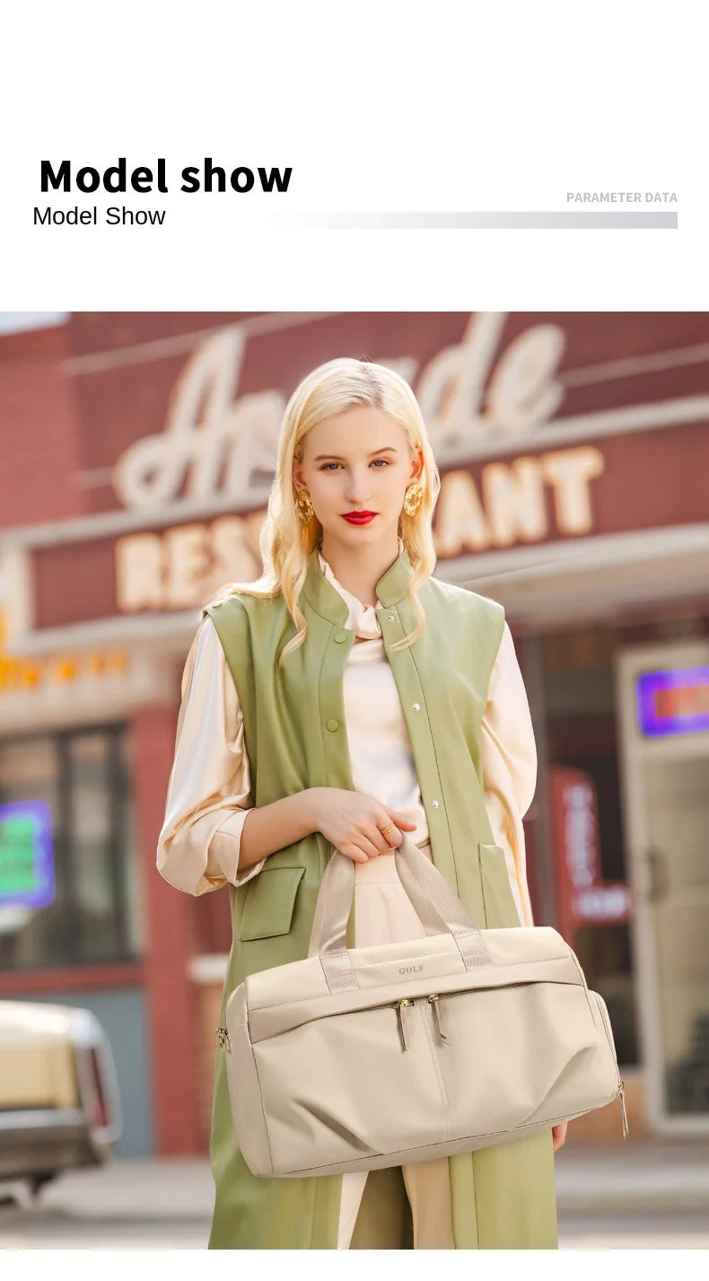 GOLF Travel Bag Hand Luggage Women Duffle Bag with Shoe Compartment Foldable Nylon Travel Handbag Lightweight Dry Wet Separation