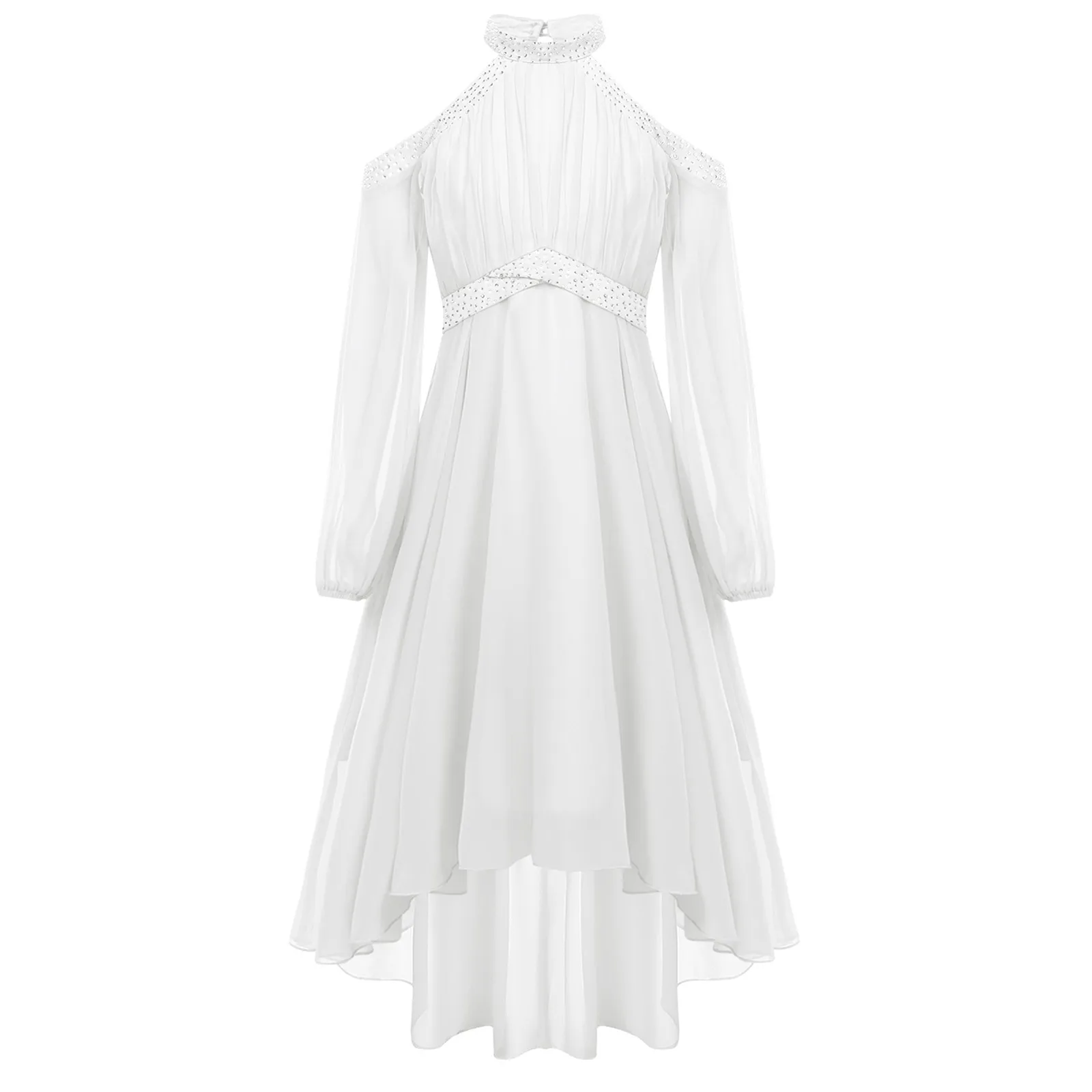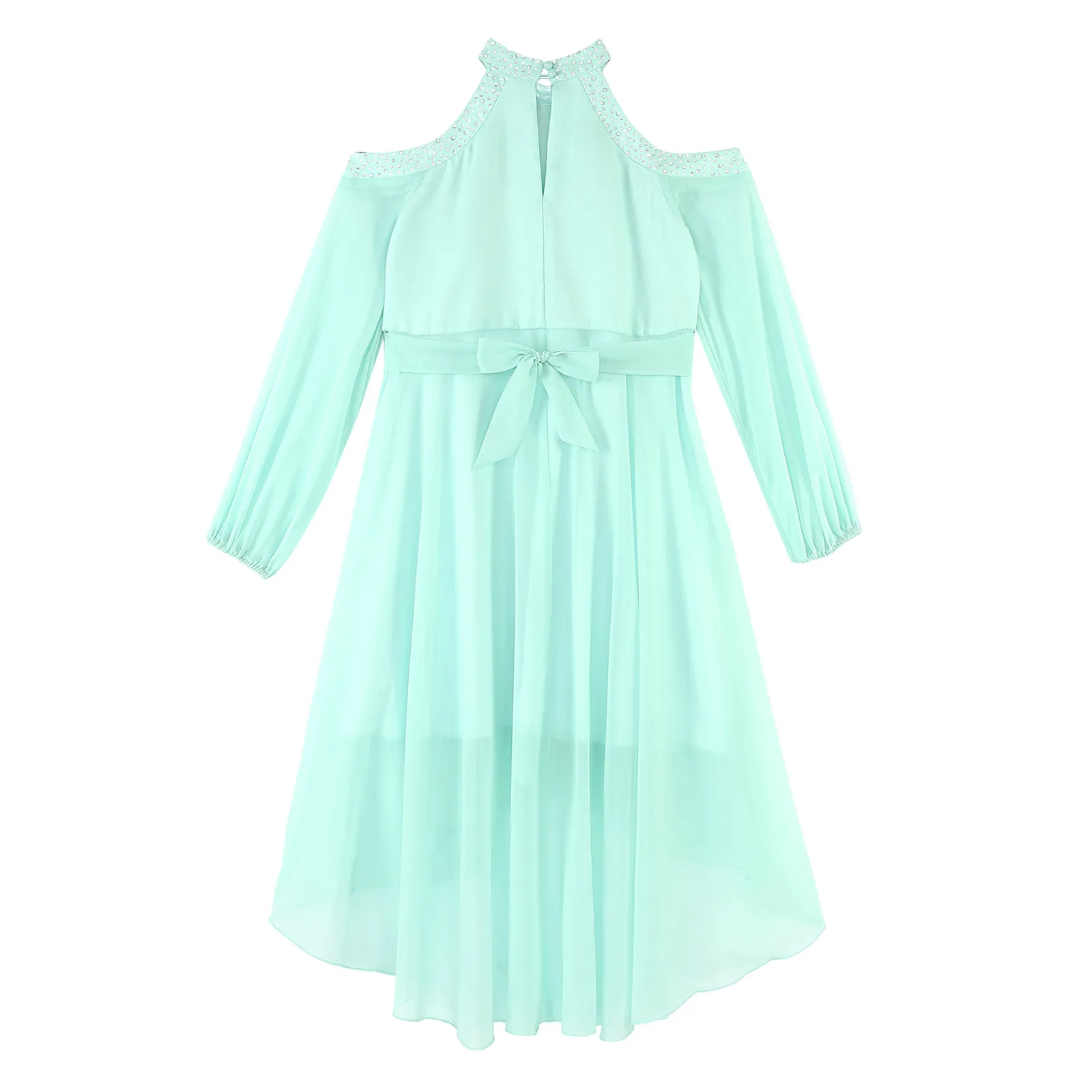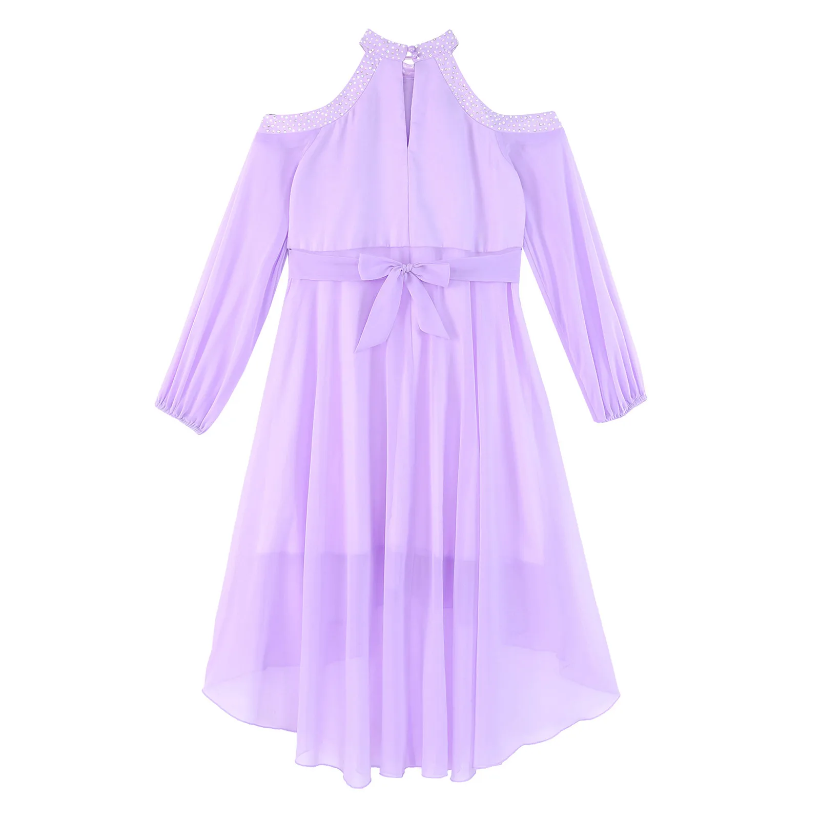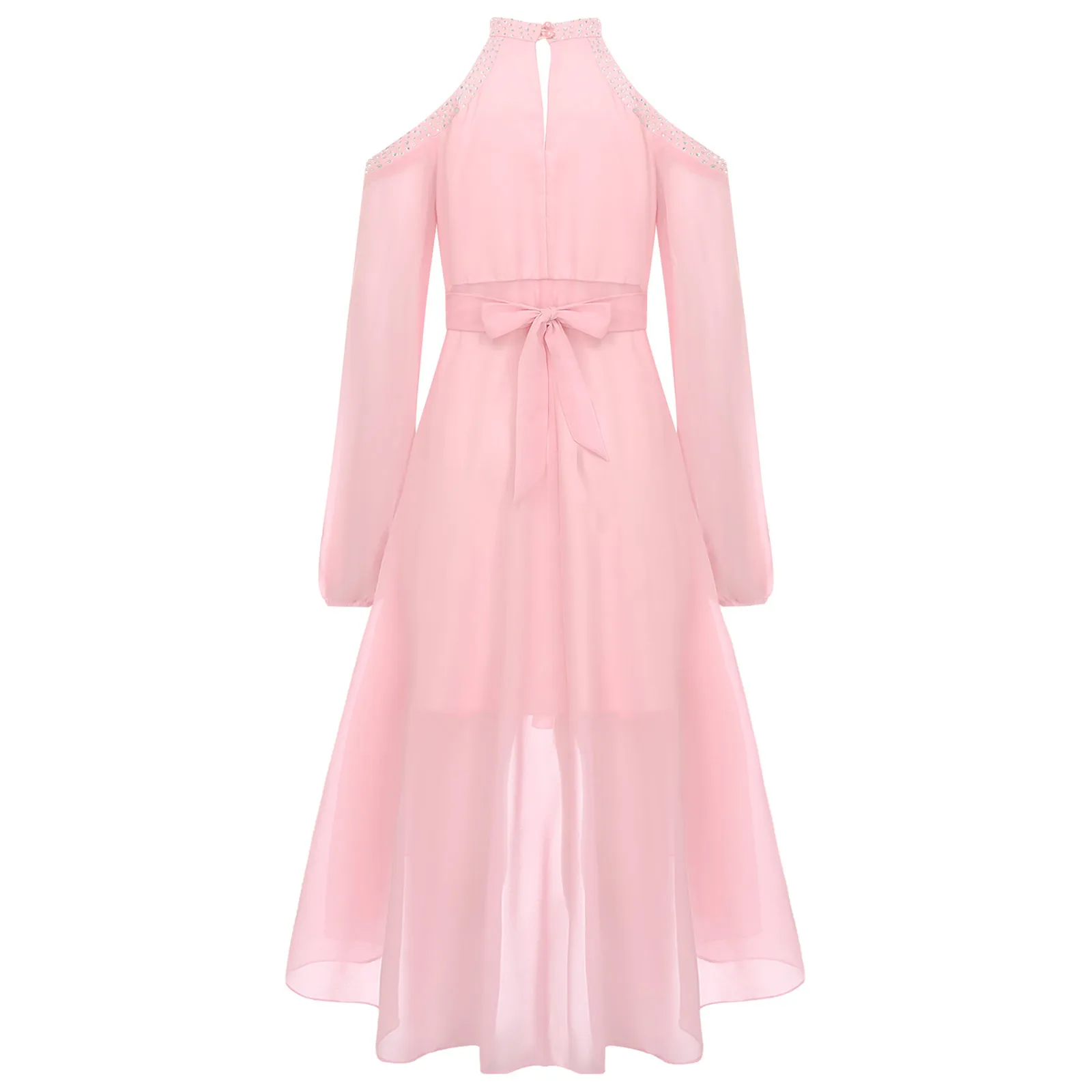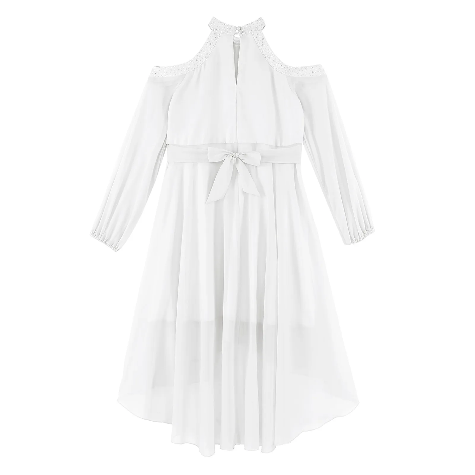 Kids Girls Elegant Party Dress Halter Off-shoulder High Waist Ruffled Chiffon Dresses Wedding Birthday Pageant Evening Prom Gown
