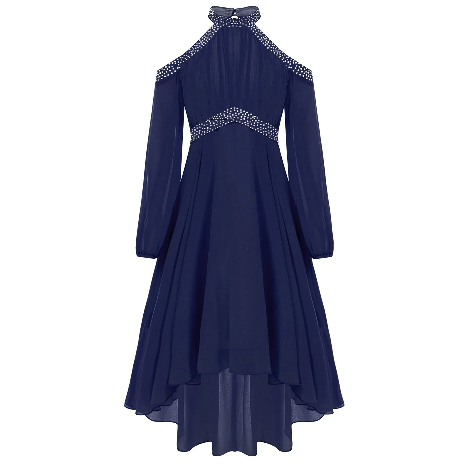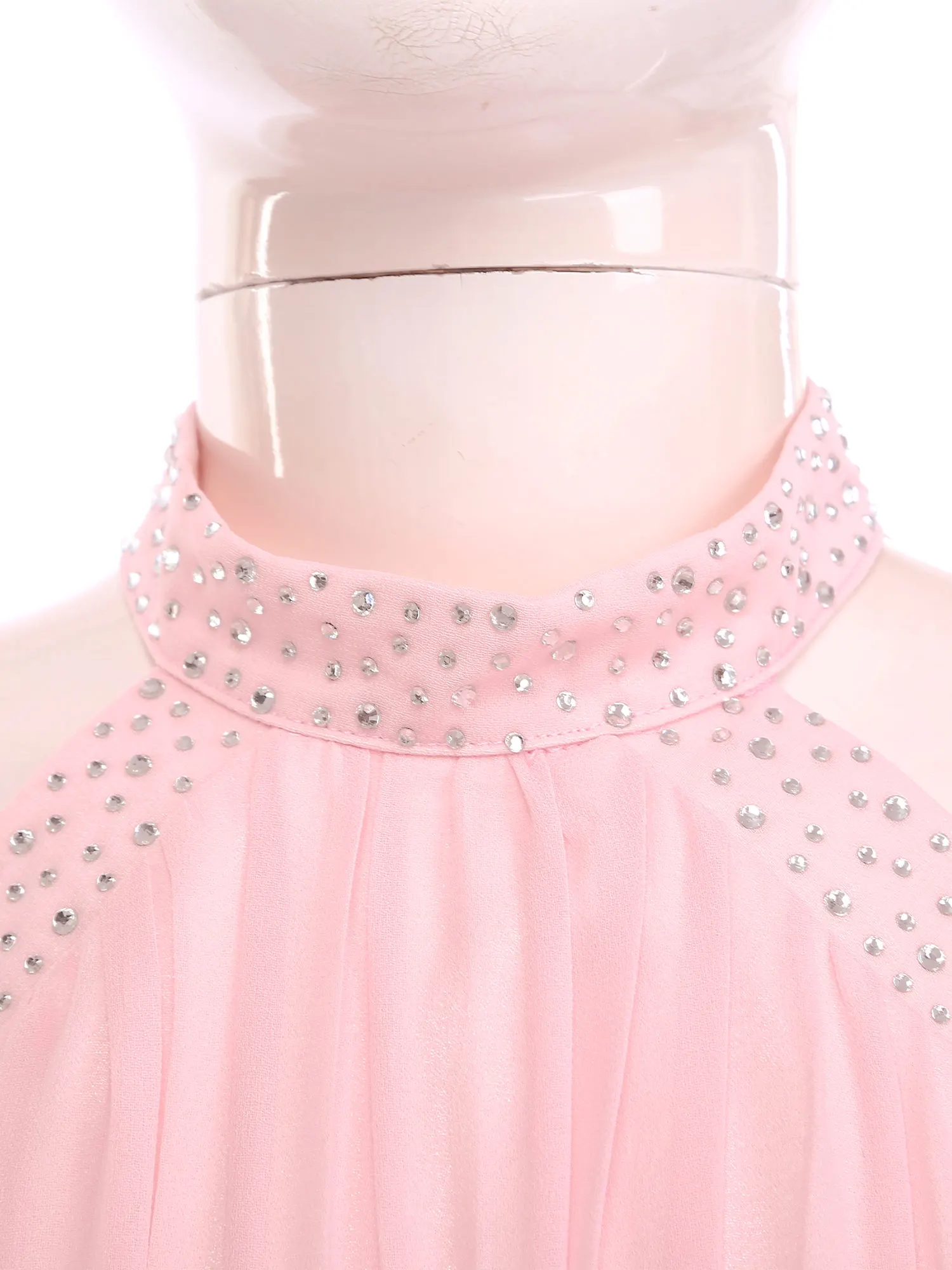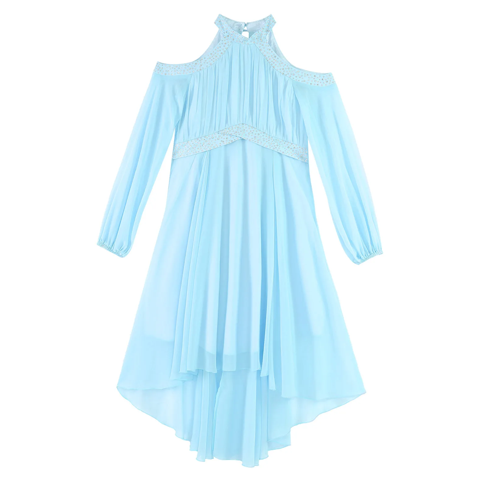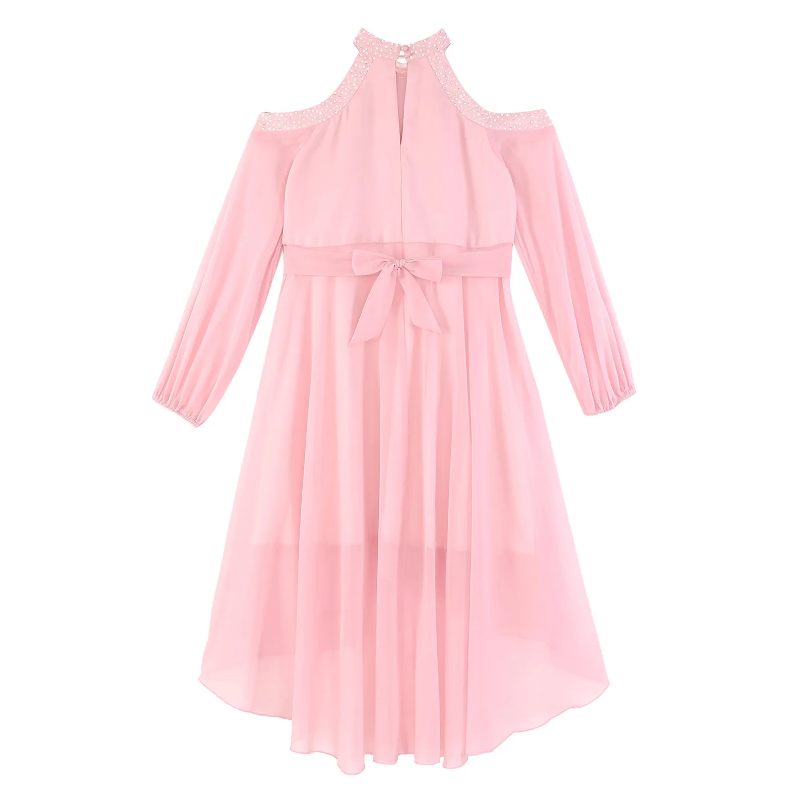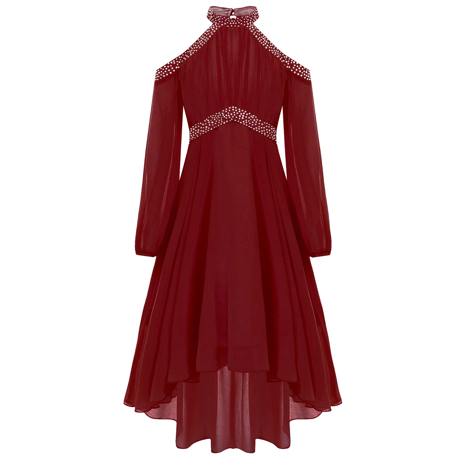 Kids Girls Elegant Party Dress Halter Off-shoulder High Waist Ruffled Chiffon Dresses Wedding Birthday Pageant Evening Prom Gown