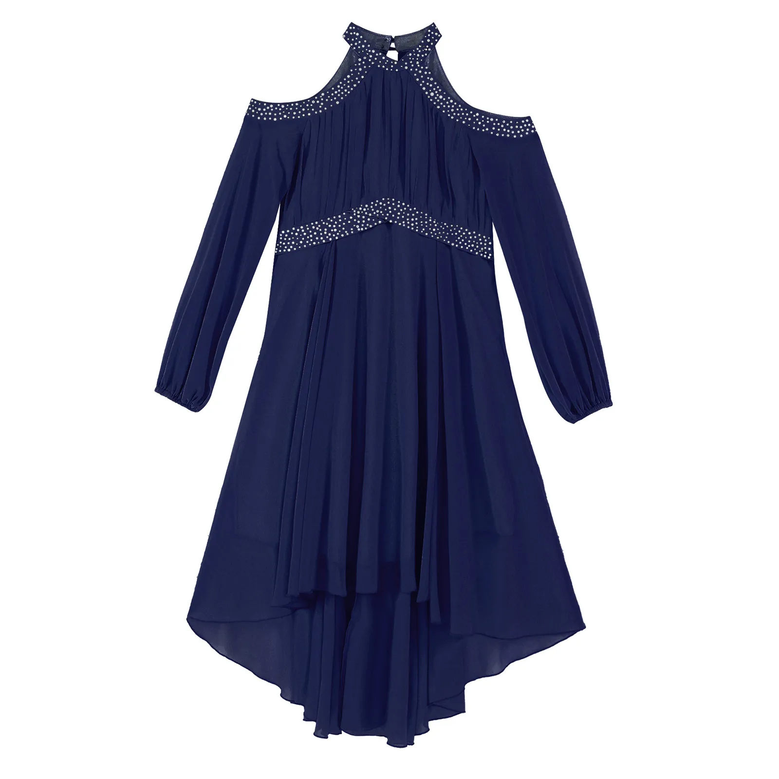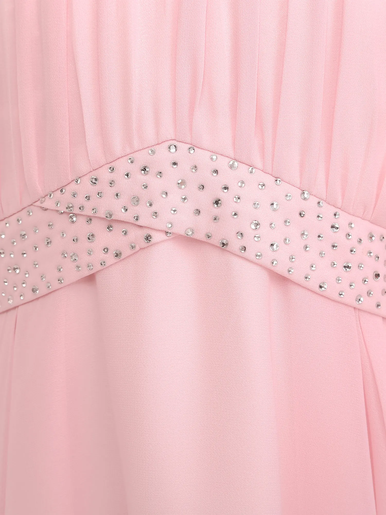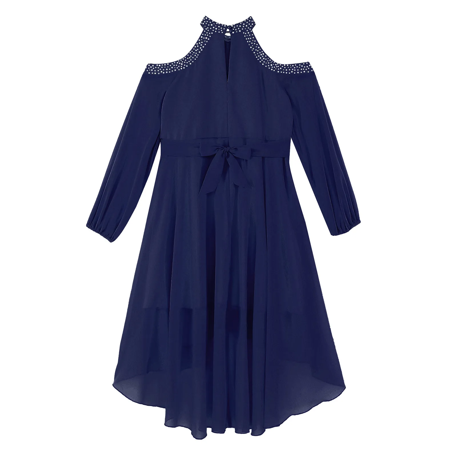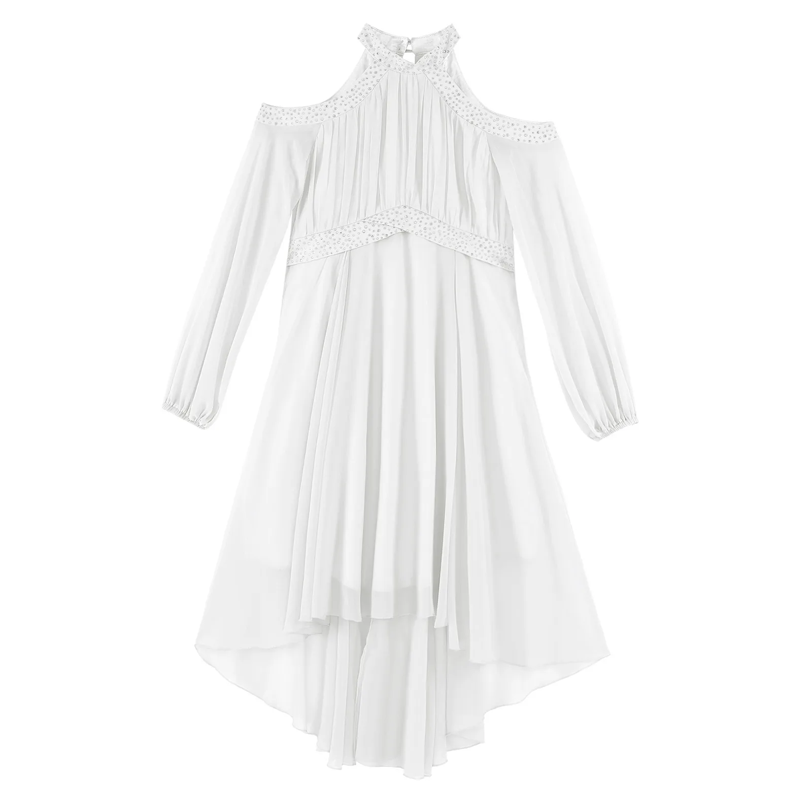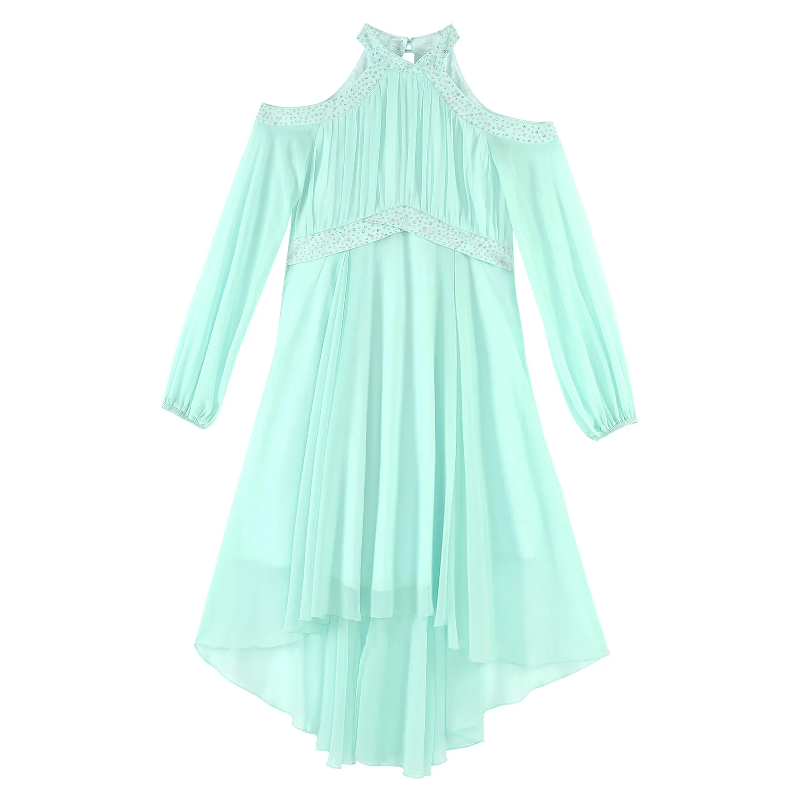 Kids Girls Elegant Party Dress Halter Off-shoulder High Waist Ruffled Chiffon Dresses Wedding Birthday Pageant Evening Prom Gown