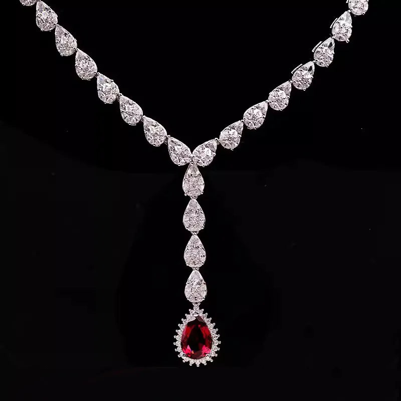 Luxury Evening Dress Accessories Pigeon Blood Red Ruby Tassel Necklaces Bracelet Earrings Rings 4-Piece Jewelry Sets For Women