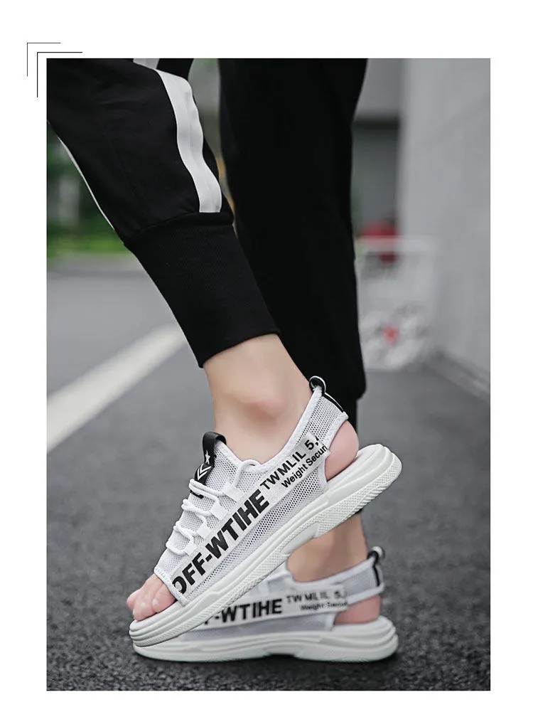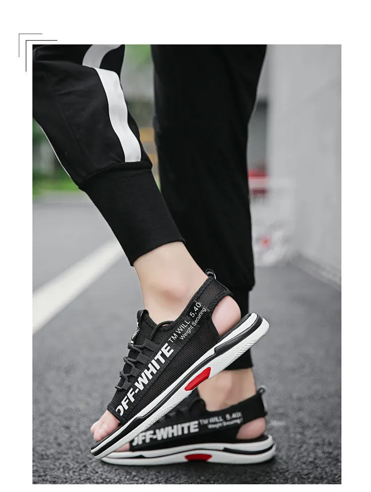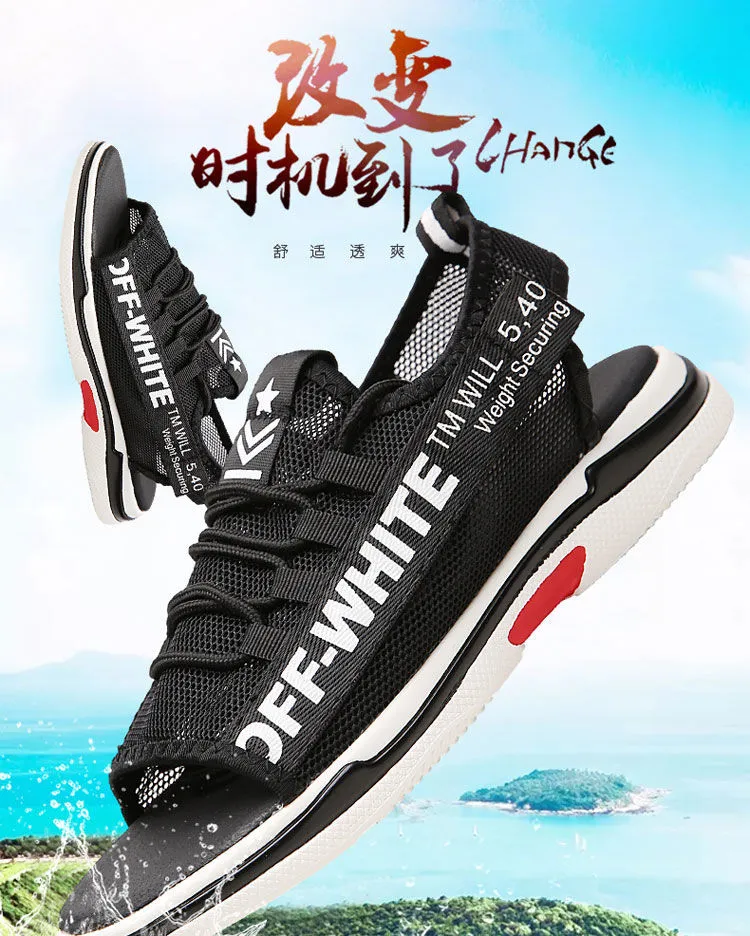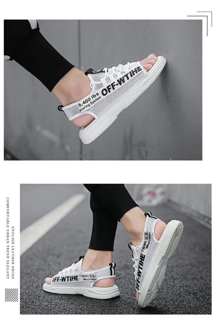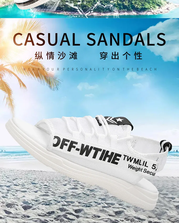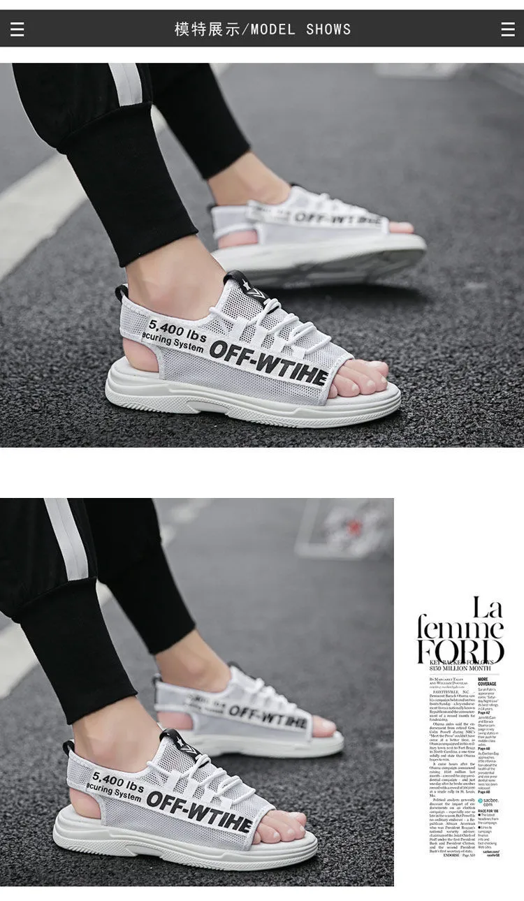 Men Sandals Breathable Shoes Hollow Out Flat Shoes Pull On Sport Outdoor Beach Sandals Shoes Men Roman Shoes Korean Youth Sandals for Men