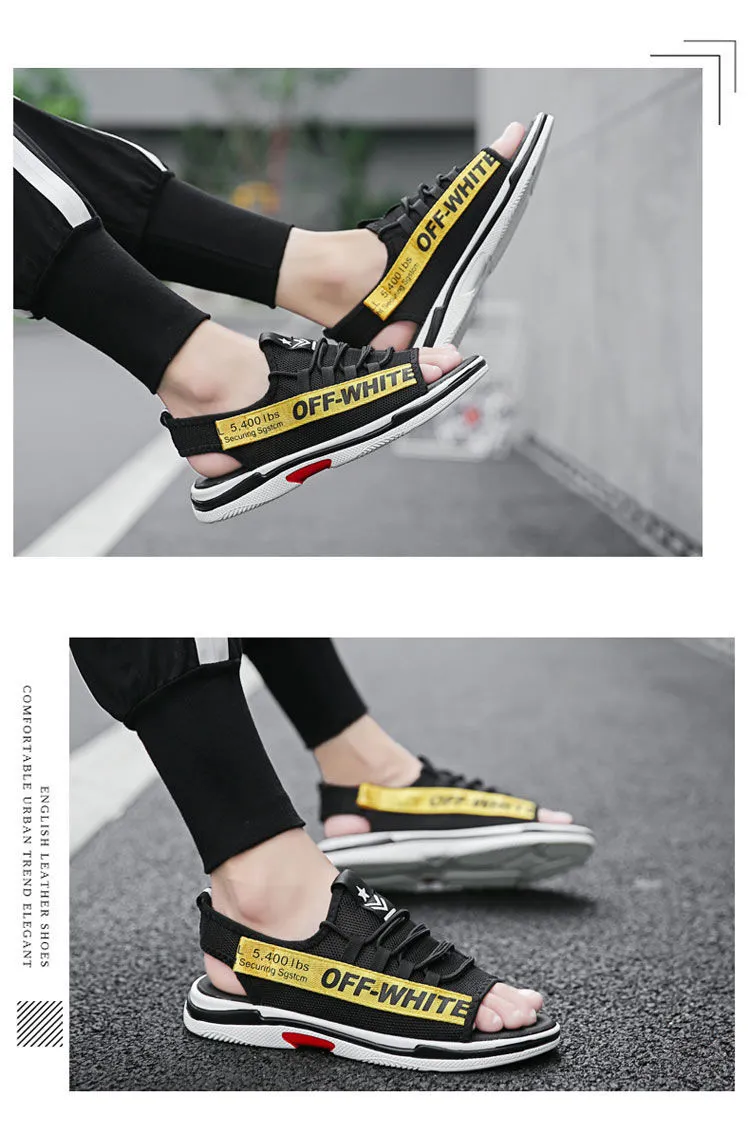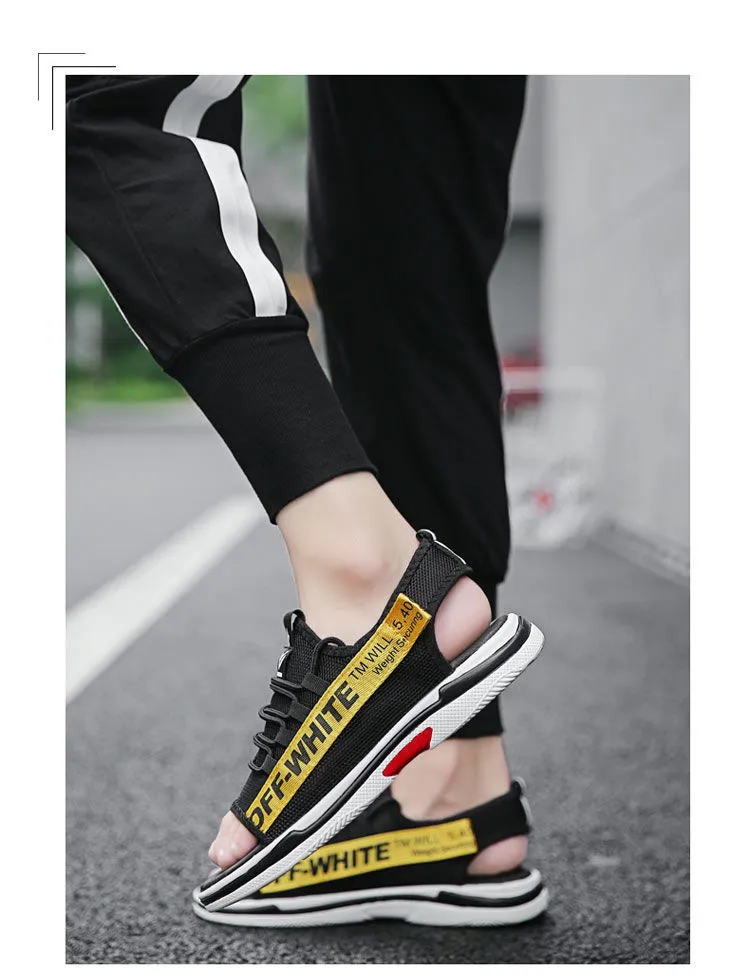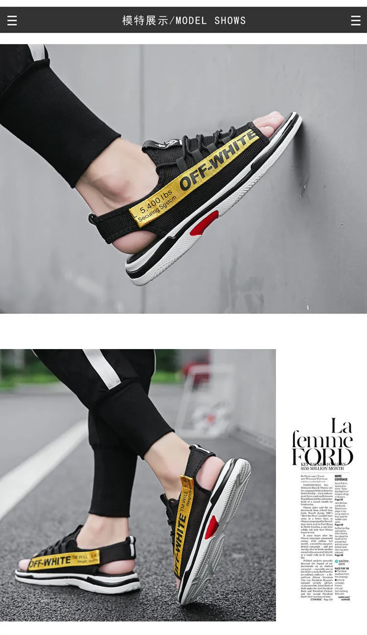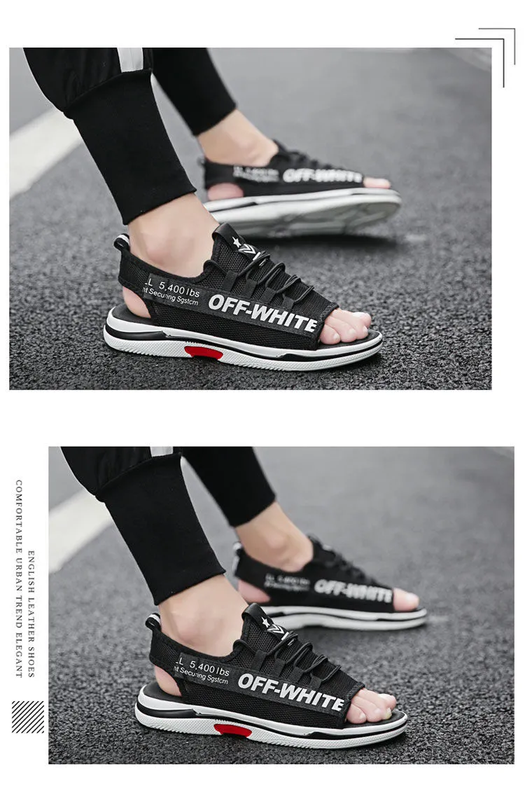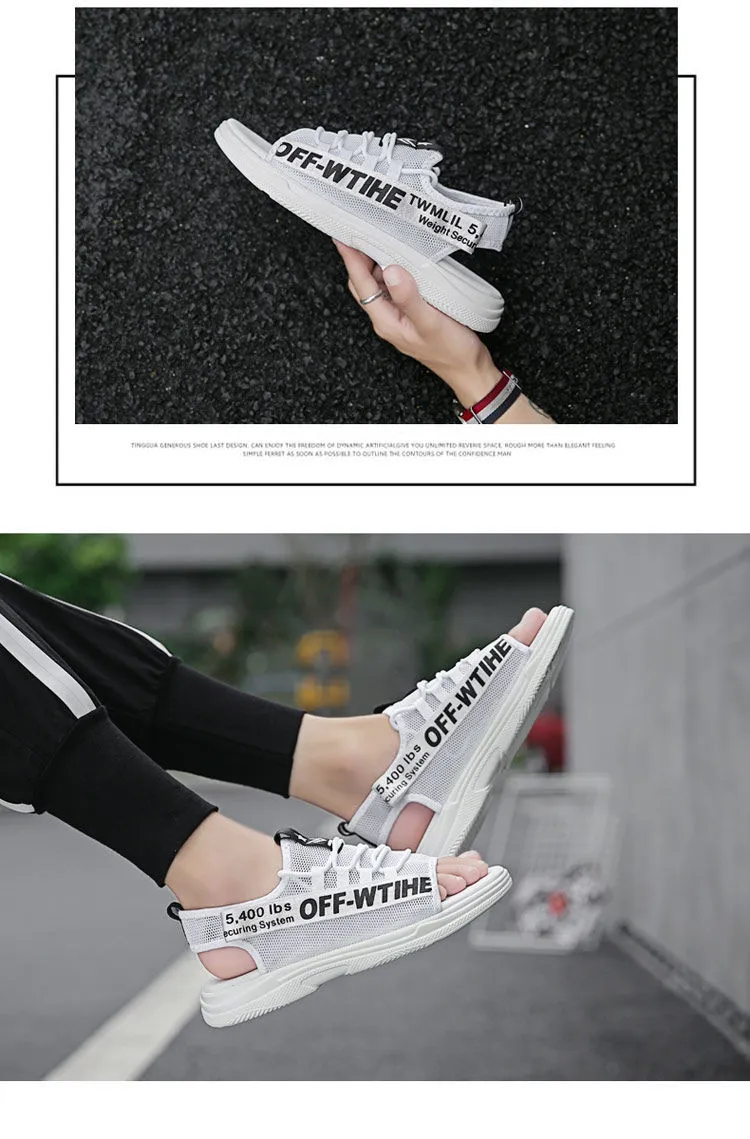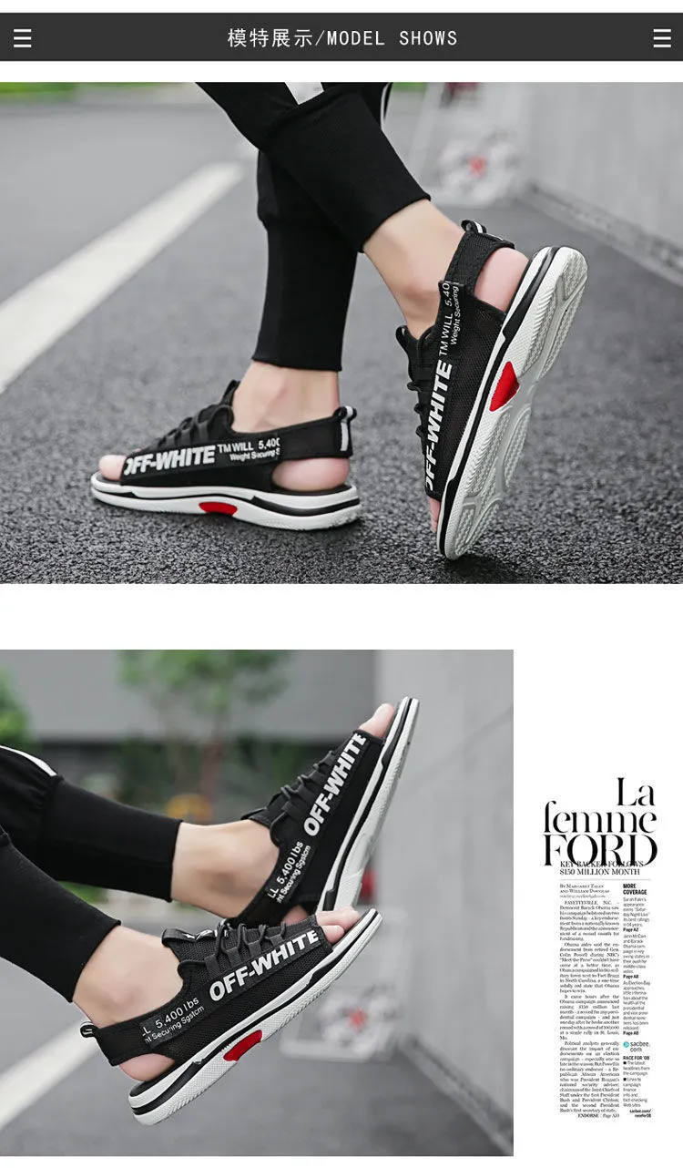 Men Sandals Breathable Shoes Hollow Out Flat Shoes Pull On Sport Outdoor Beach Sandals Shoes Men Roman Shoes Korean Youth Sandals for Men