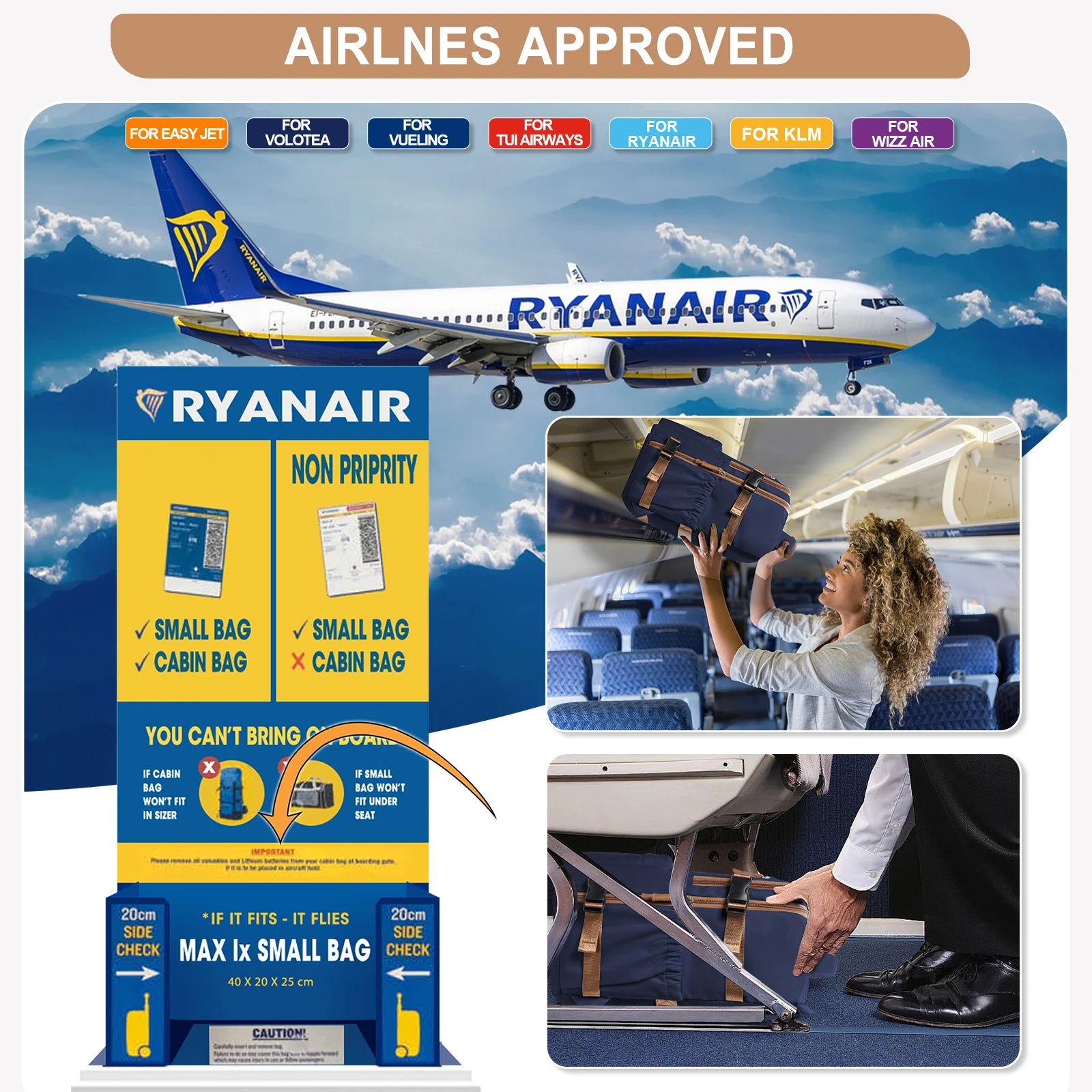 Men Women Hand Luggage Leisure Laptop Backpack mochila para viaje cabina, Airplane Cabin Bag zaino wizzair 40x30x20, Schoolbag