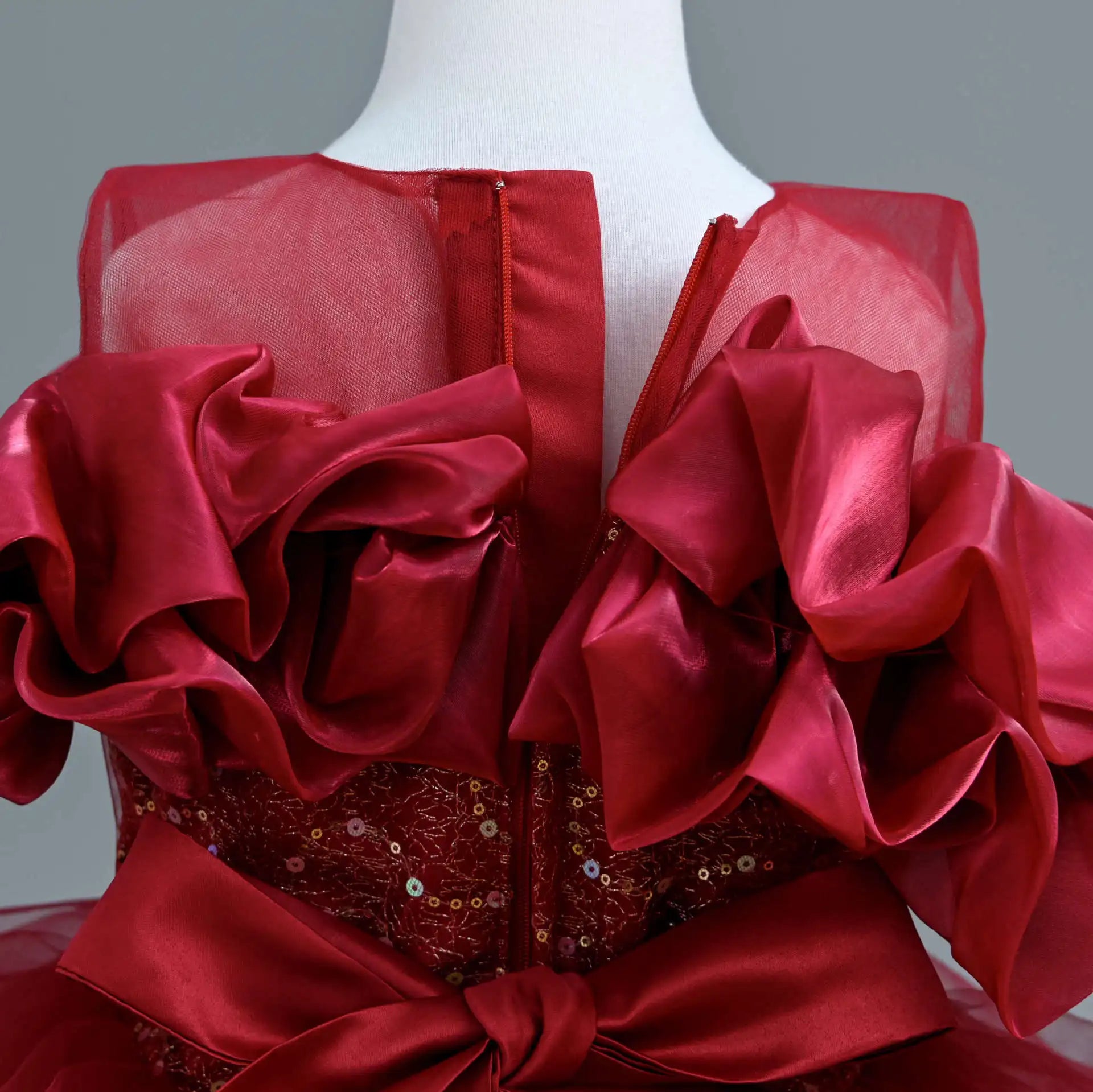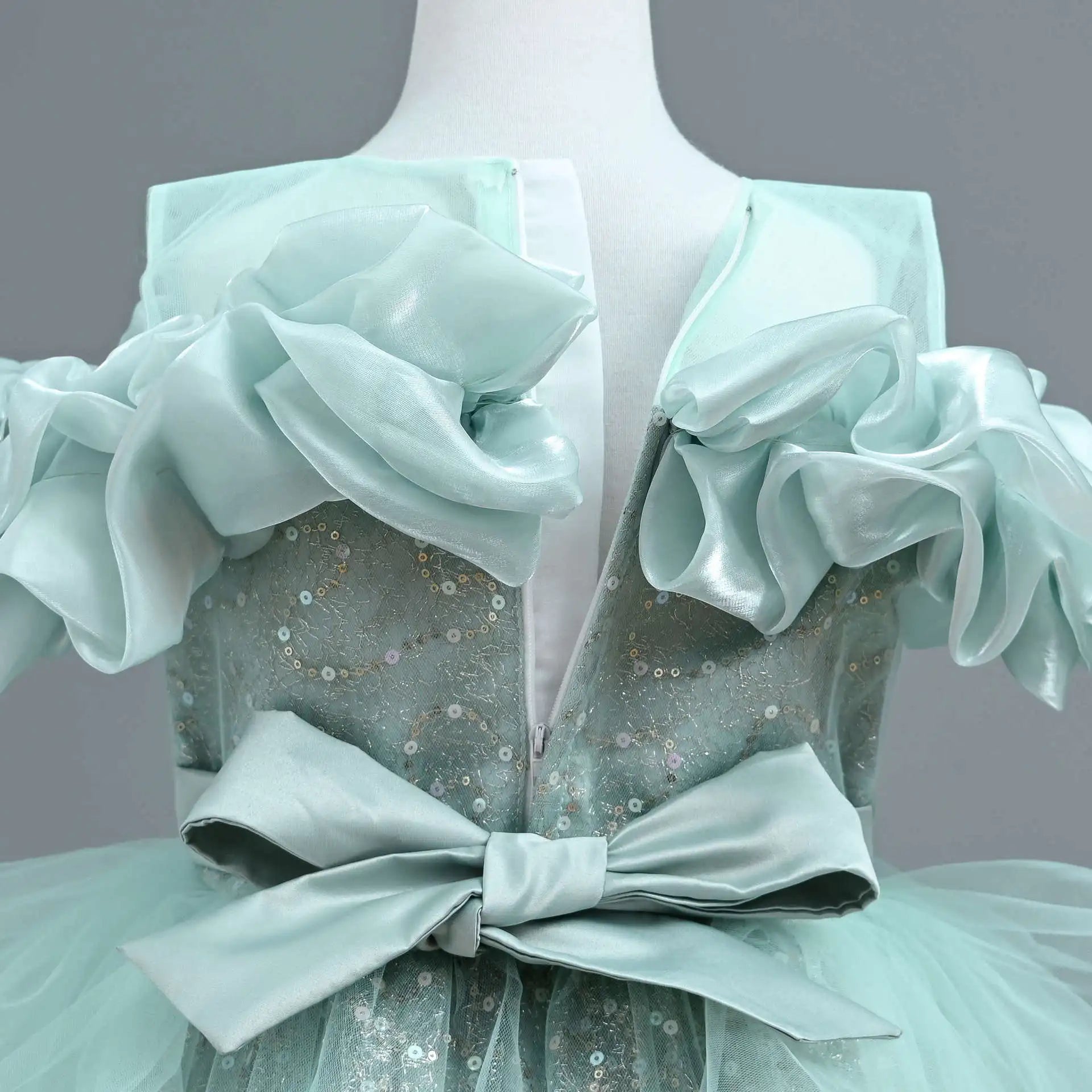 New Girl's Wedding Evening Dress Petal Sequin Mesh Sleeveless Dress Birthday Party School Graduation Party Dress