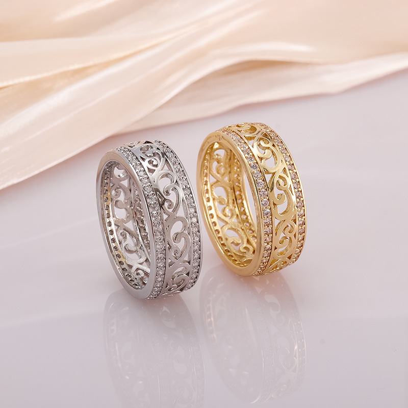 Colors: Gold-colored ring with openwork design, silver-colored ring with openwork design