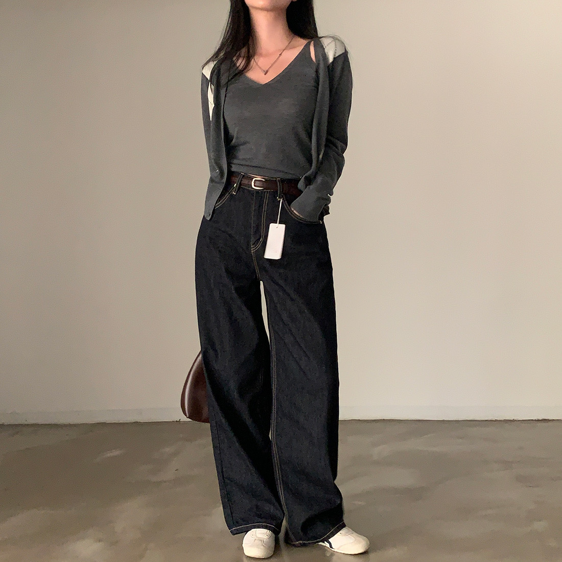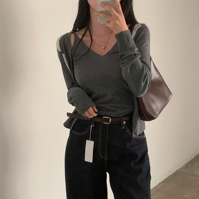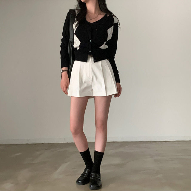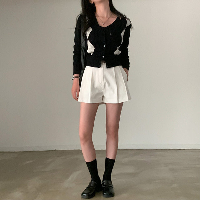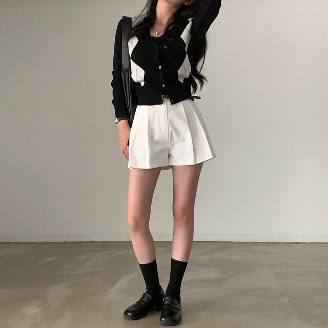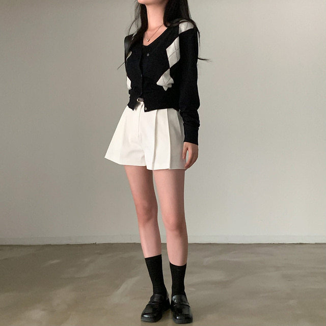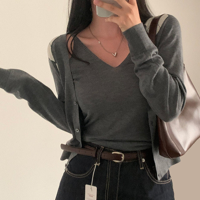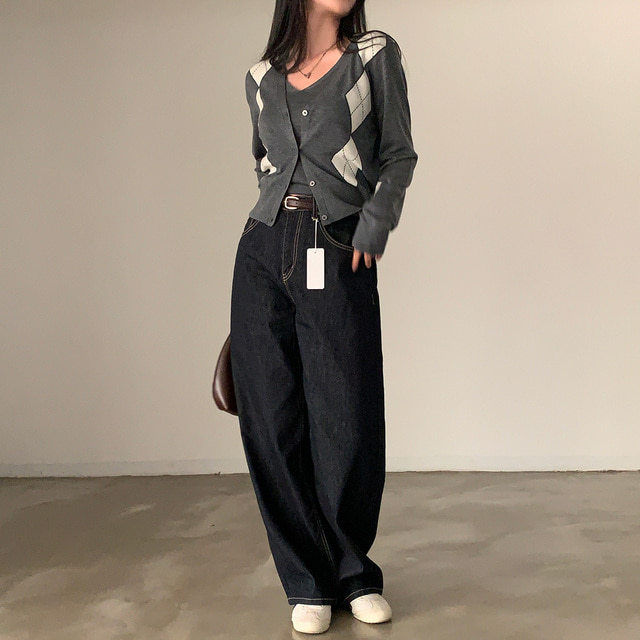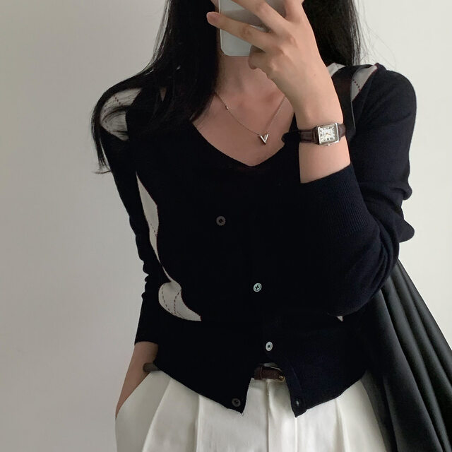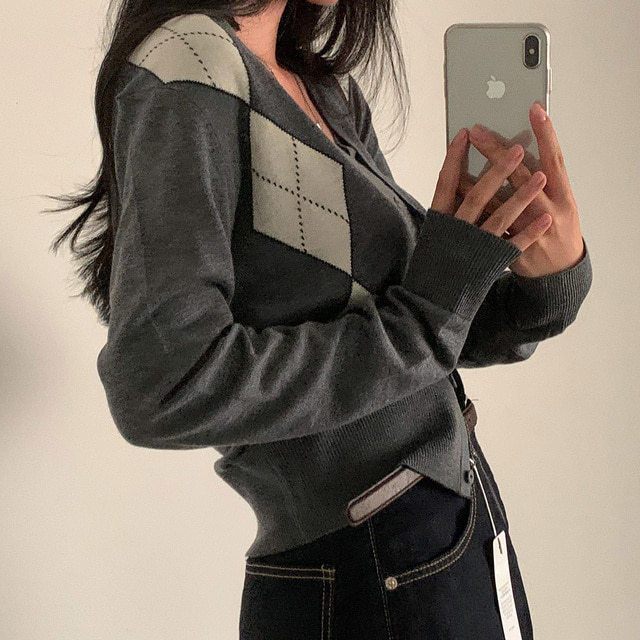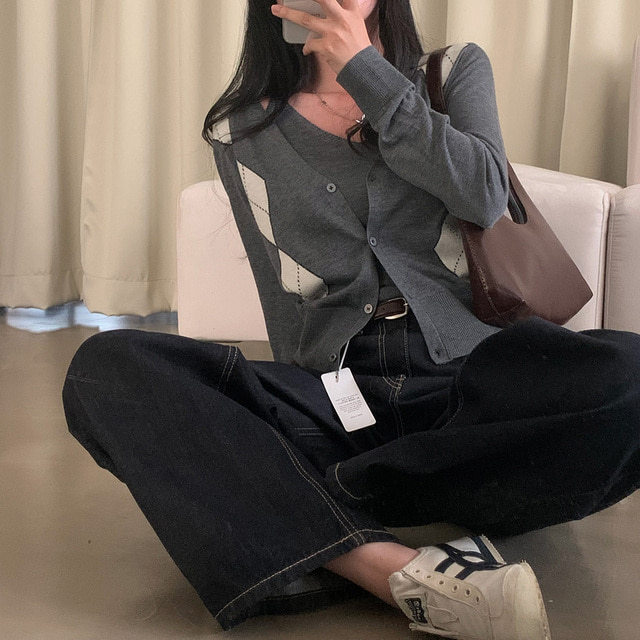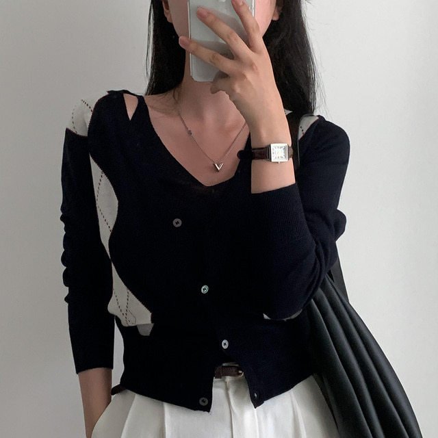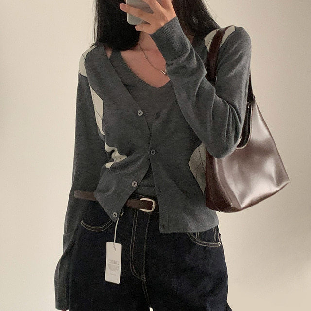 Retro Diamond V-neck Long-sleeve Knitwear Vest Suit
