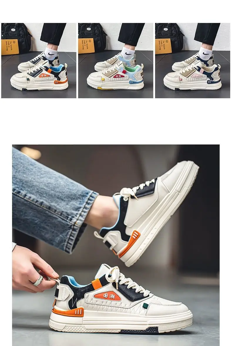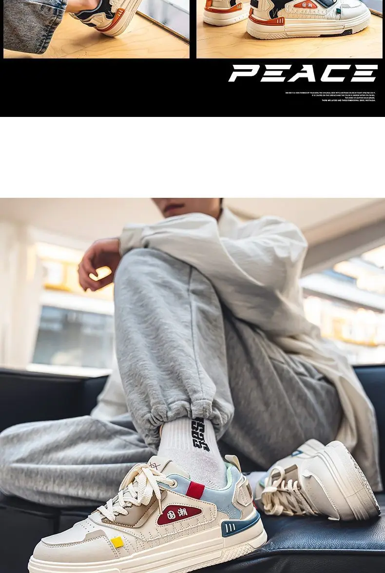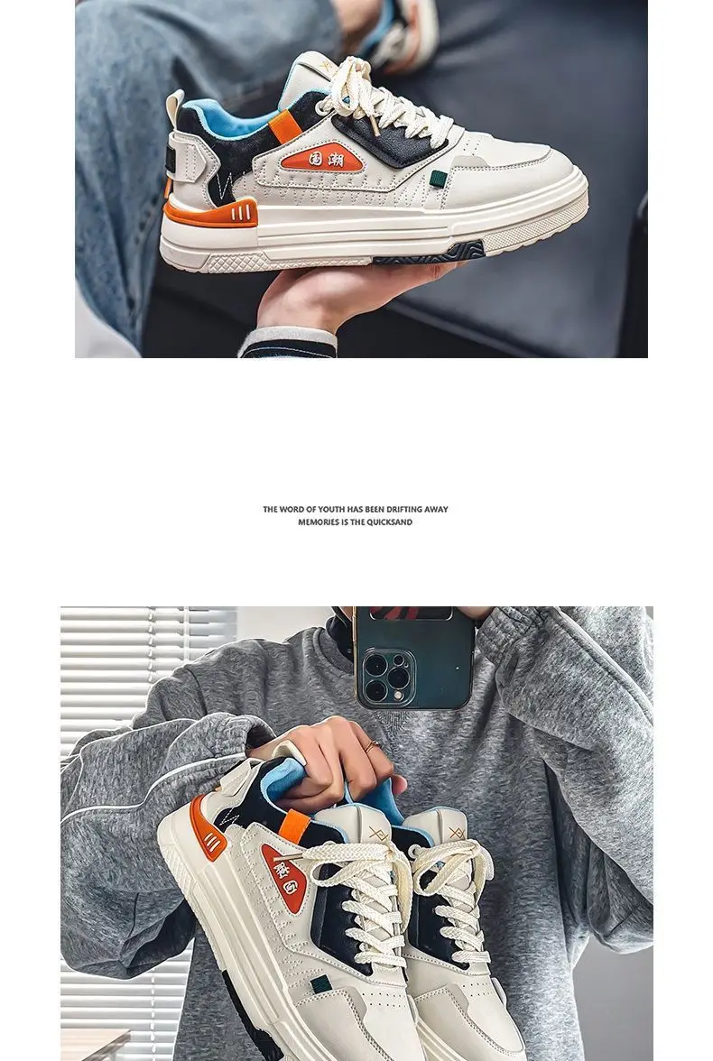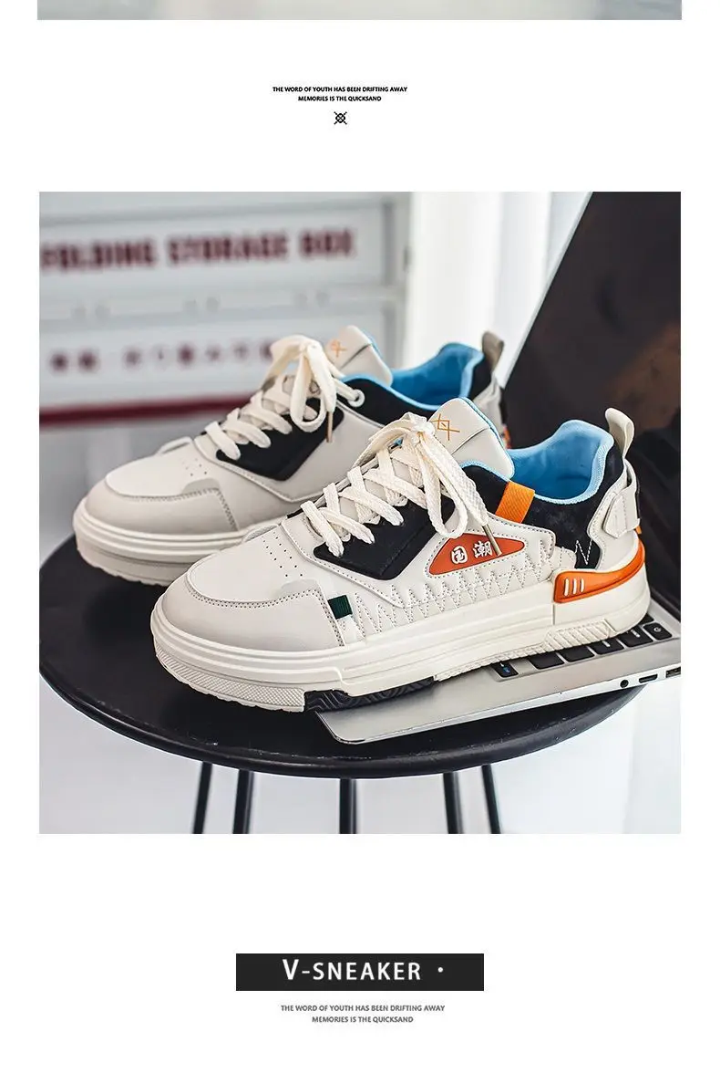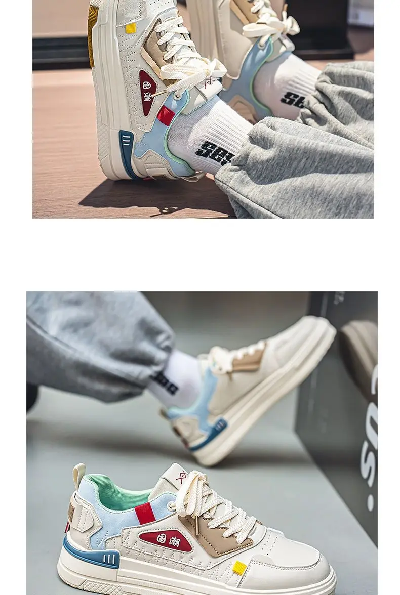 Spring New Men's Breathable Casual Board Shoes White Sports Design Joker Printed Wear-Resistant for Students National Tide