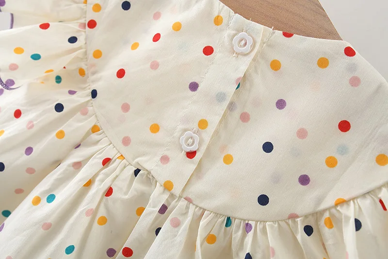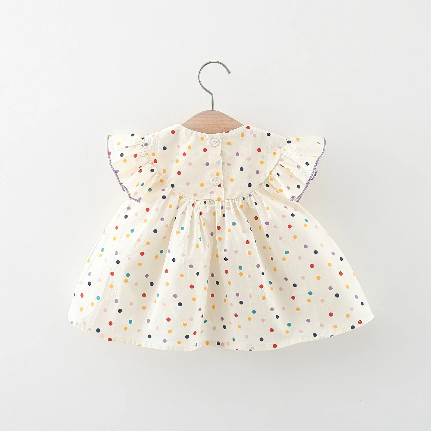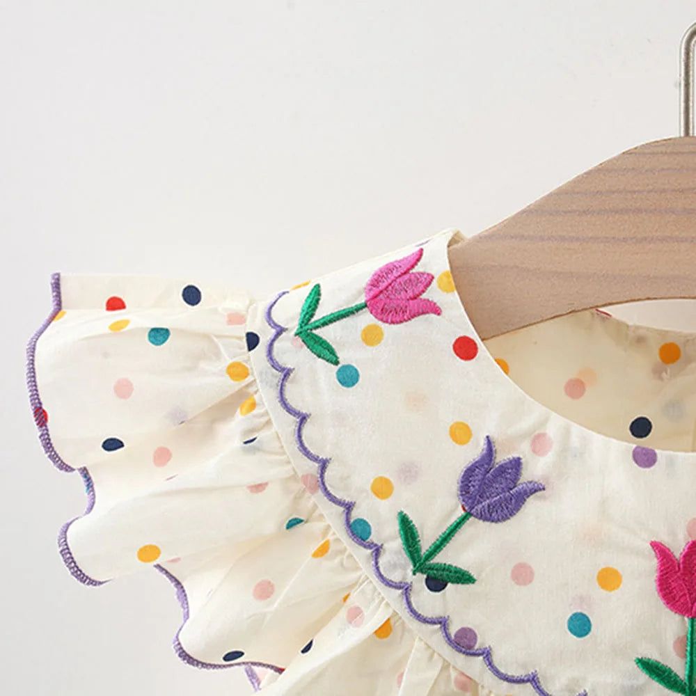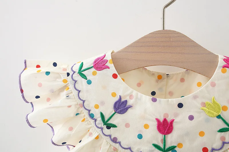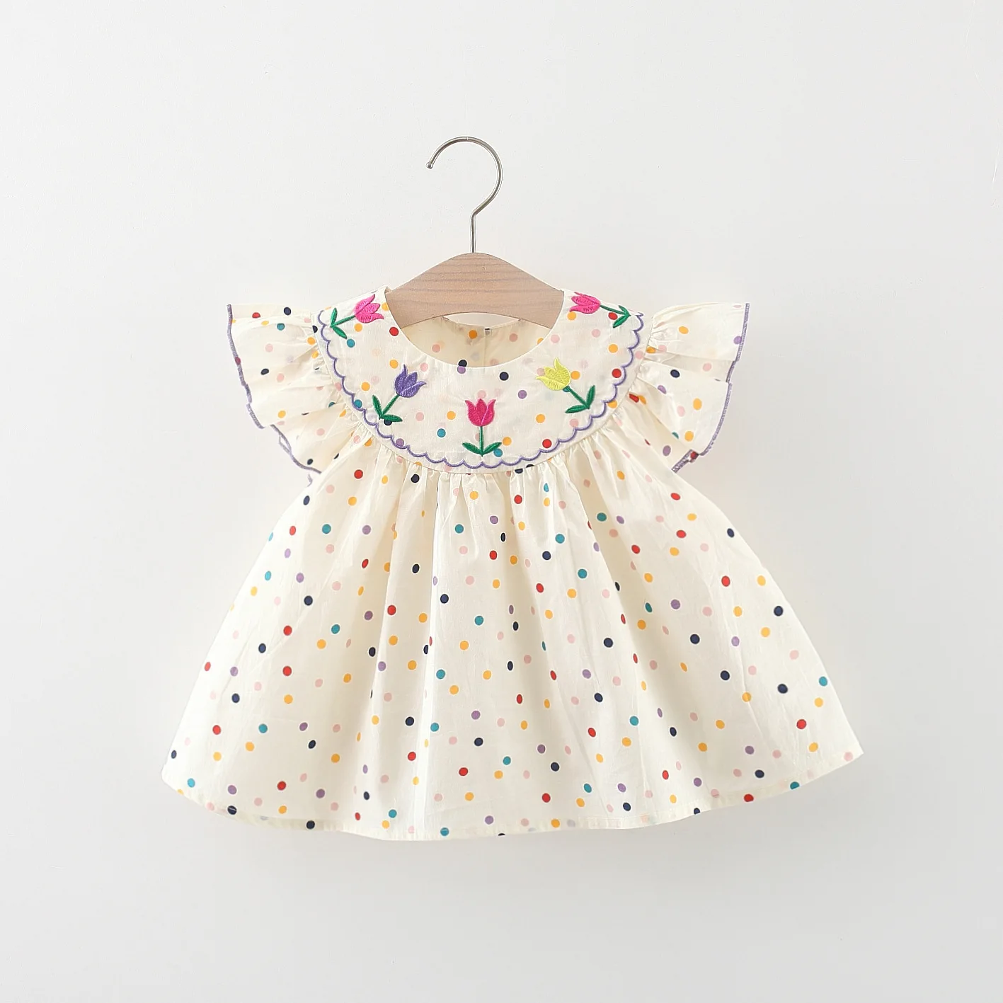 Summer New Girl'S Dress With Small Flying Sleeves Tulip Embroidery Dotted Print Sweet Princess Dress Light And Thin Style (0-3 Y