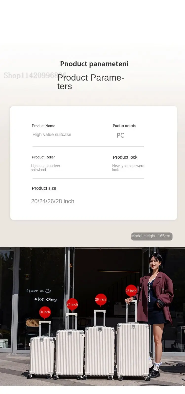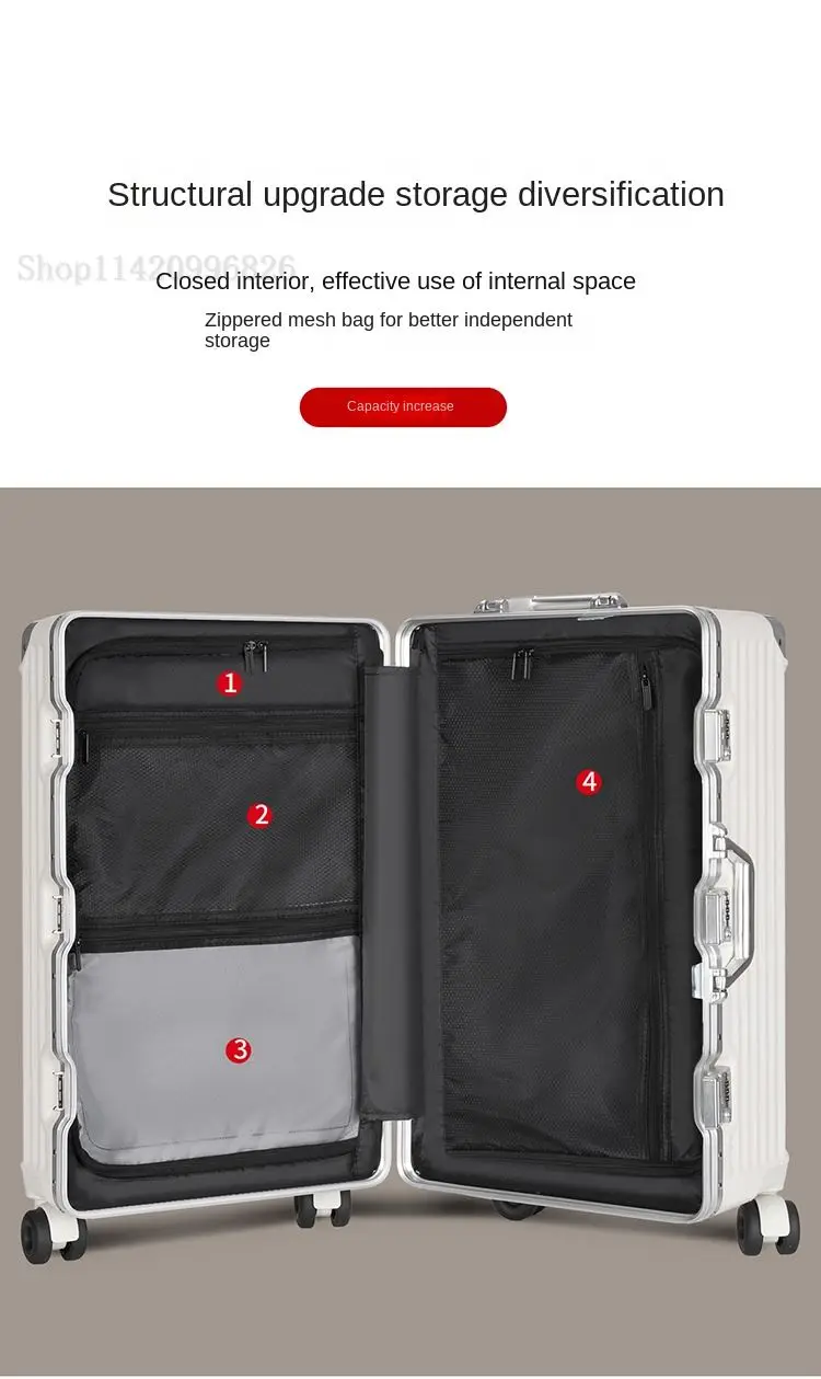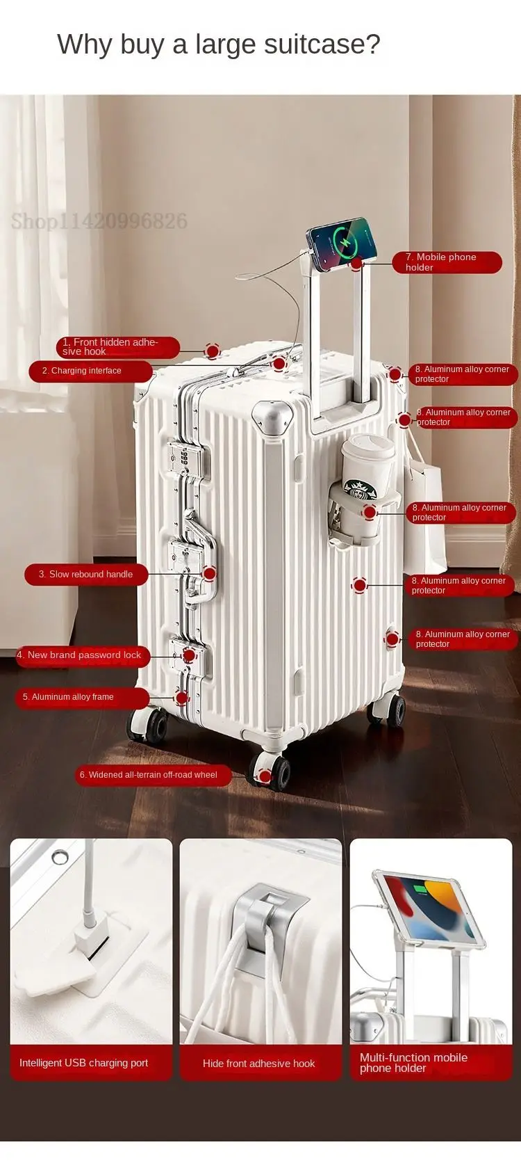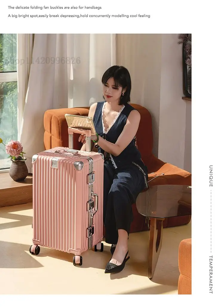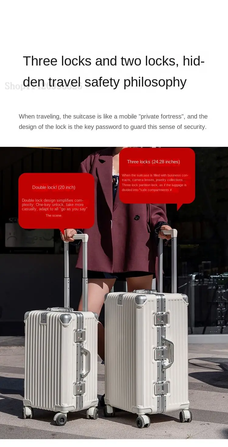 Travel Luggage Large Capacity 28-inch Reinforced Aluminum Frame Trolley Suitcase 20-inch Carry-On Suitcase with Silent Wheels