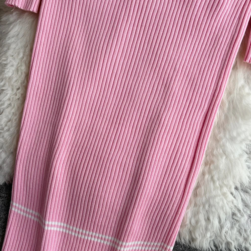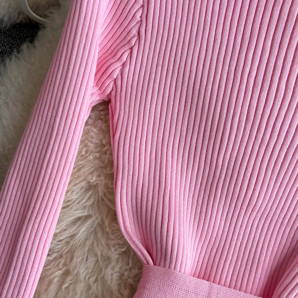 Women Dress 2025 Autumn Winter Elegant Rib Knit Long Pencil Dress with Belt Office Lady Bodycon Sweater Dress Vestidos