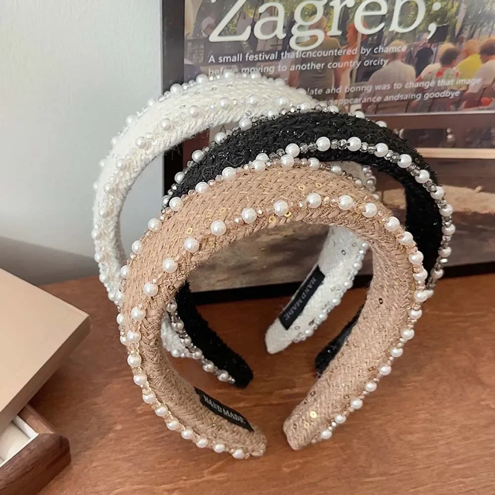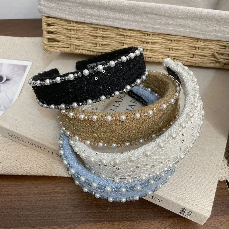Women Hair Accessories France Pearl Beaded Hairhoops Headwears Weave Hairbands for Women Fashion Headband Accessories