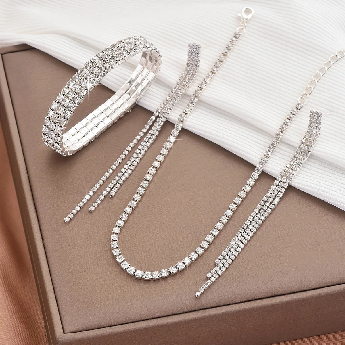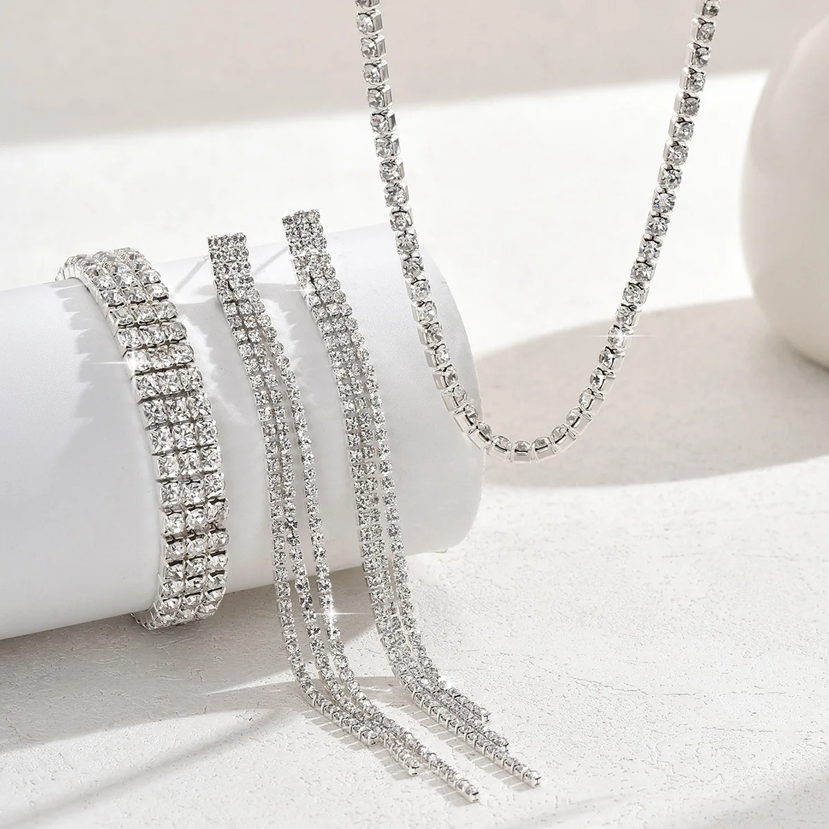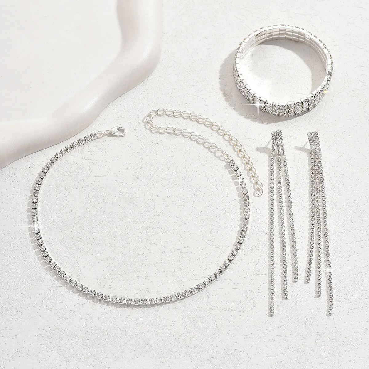 Women Shiny Long Tassel Earrings Choker Bracelet Collarbone Chain Party Cocktail Evening Prom Fashion Accessories