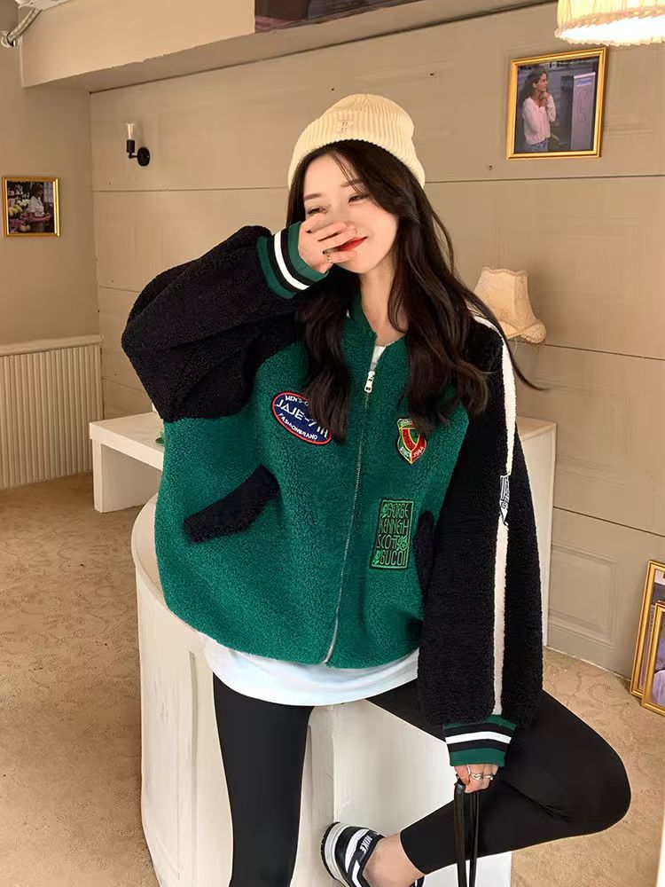 Women's Fashion Versatile Fleece Patchwork Jacket